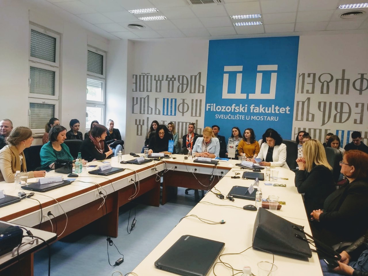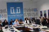 Dr. sc. Darija Glibić zahvalila je u ime Studija njemačkoga jezika i književnosti na dolasku i sudjelovanju na okruglome stolu. „Vjerujem da će ovaj okrugli stol postati platforma za raspravljanje o mogućnostima i perspektivama koje se nude studentima nakon završenog studija kako na teritoriju BiH tako i širom svijeta“, kazala je Glibić.