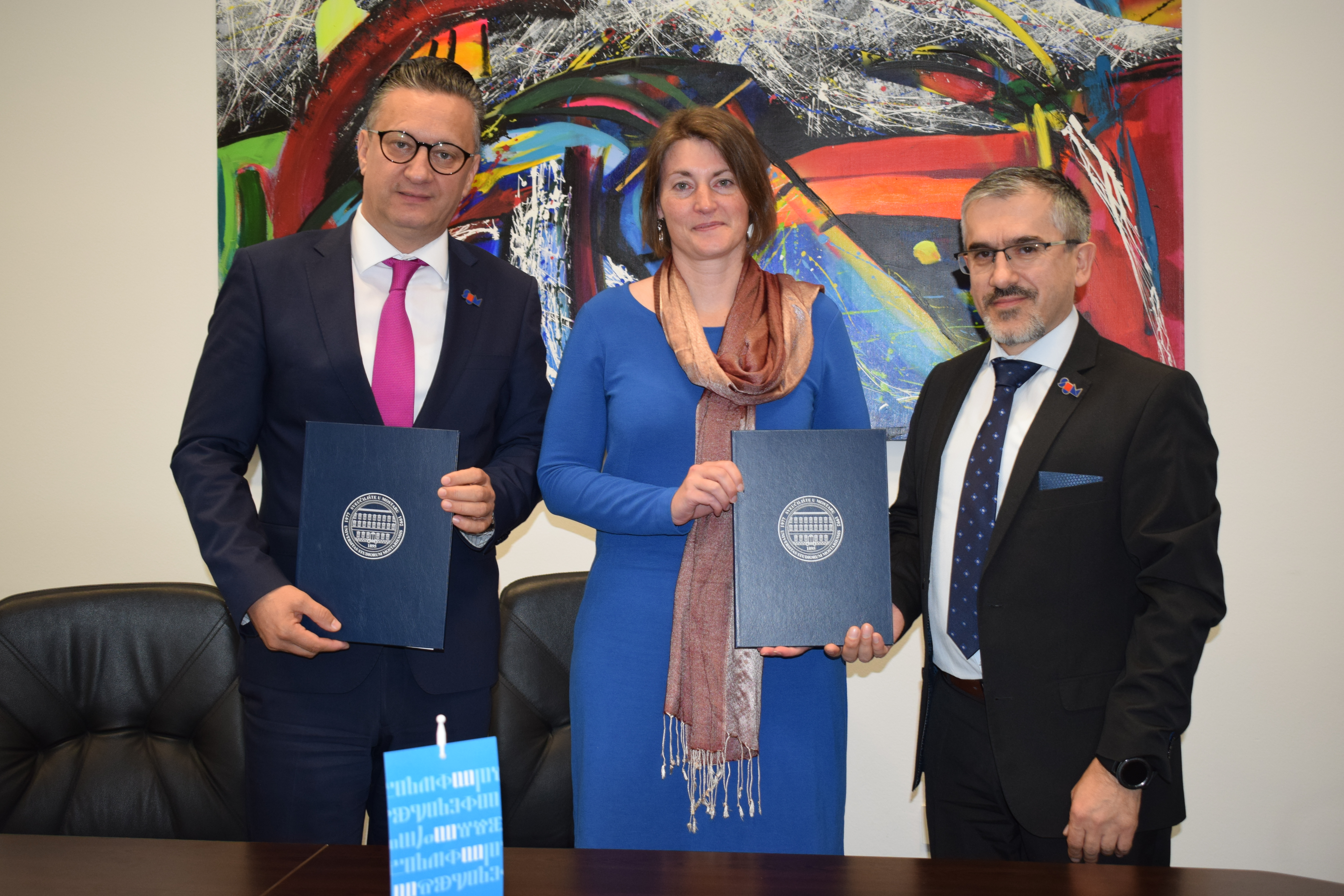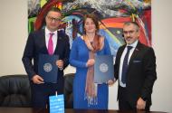 Rektor Sveučilišta u Mostaru prof. dr. sc. Zoran Tomić, dekan Filozofskog fakulteta prof. dr. sc. Ivica Musić i ravnateljica jezičnoga odjela Goethe-Instituta dr. Alexandra Mittler potpisali su Sporazum o obrazovanju i daljnjem usavršavanju nastavnika njemačkoga jezika kao i promicanju njemačkoga jezika u BiH.