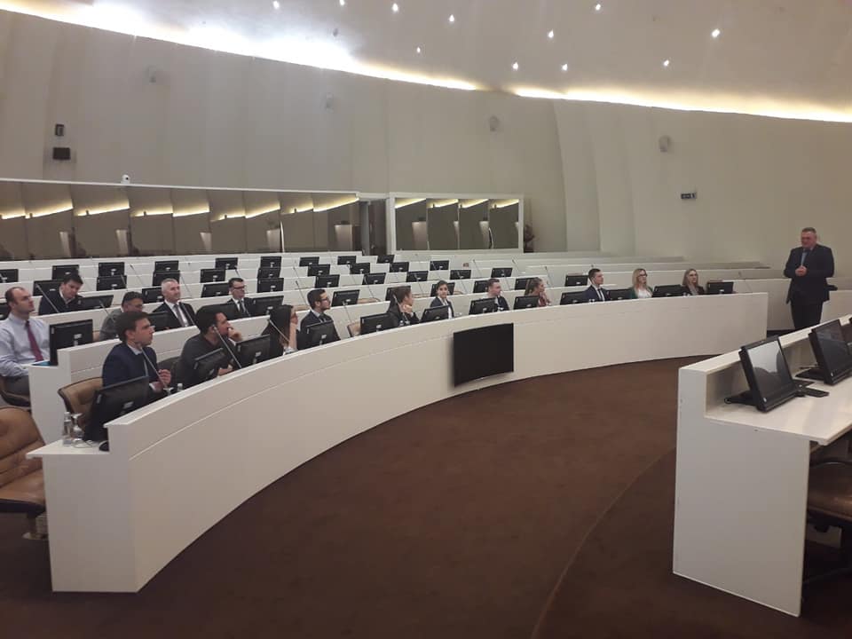 Predsjedateljica Zastupničkoga doma Parlamentarne skupštine BiH Borjana Krišto bila je domaćin posjeta i na samome je početku pozdravila studente te održala predavanje na temu „Struktura i zakonski okviri funkcioniranja Zastupničkoga doma i Doma naroda PS BiH“. Predsjedateljica Krišto predočila je studentima praktični način funkcioniranja obaju domova na državnoj razini kao i samu primjenu zakonskih okvira, regulativa i procedura.