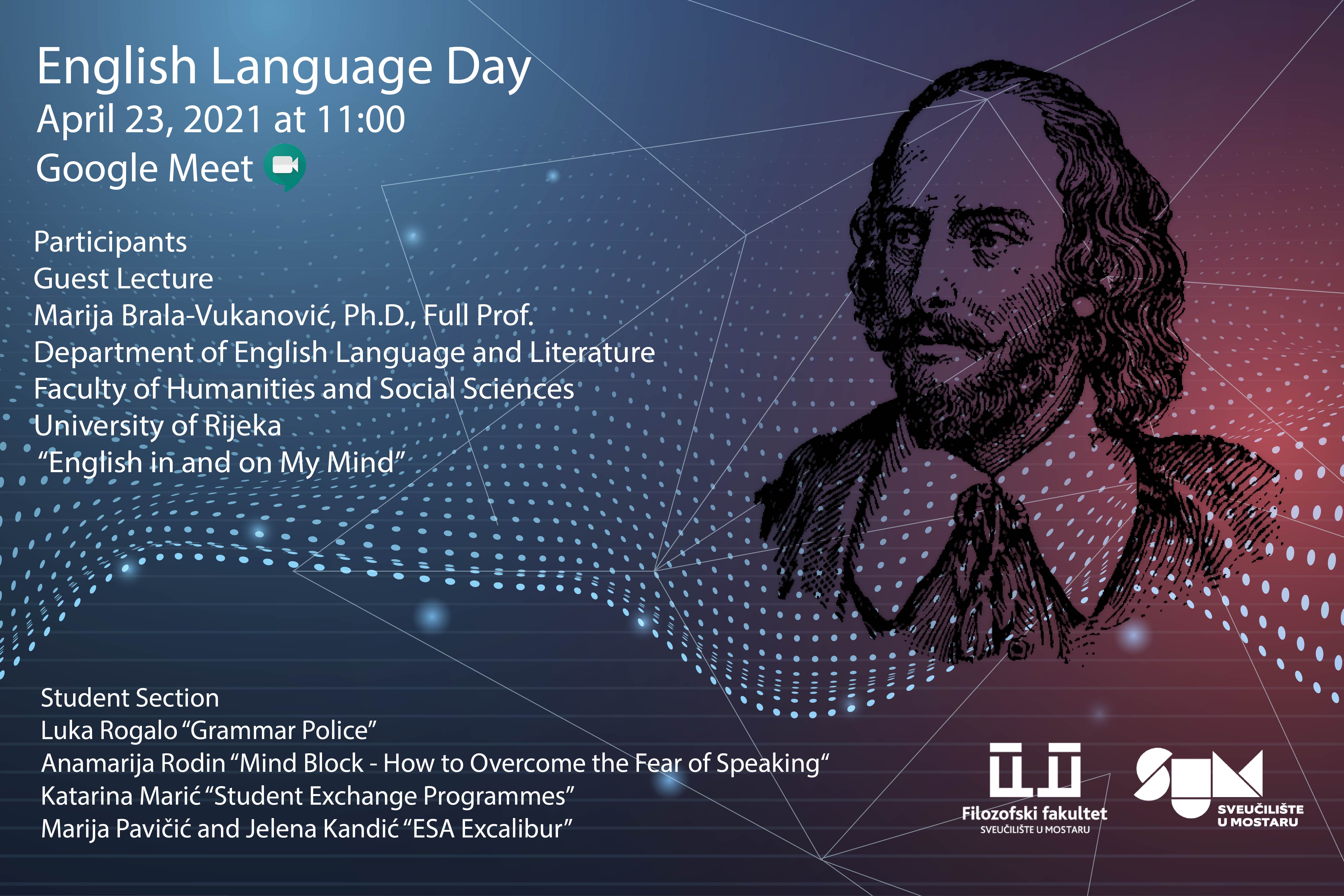 Studij engleskoga jezika i književnosti Filozofskoga fakulteta Sveučilišta u Mostaru obilježava Međunarodni dan engleskoga jezika online predavanjem na temu English in and on My Mind 23. travnja 2021. u 11 sati.
