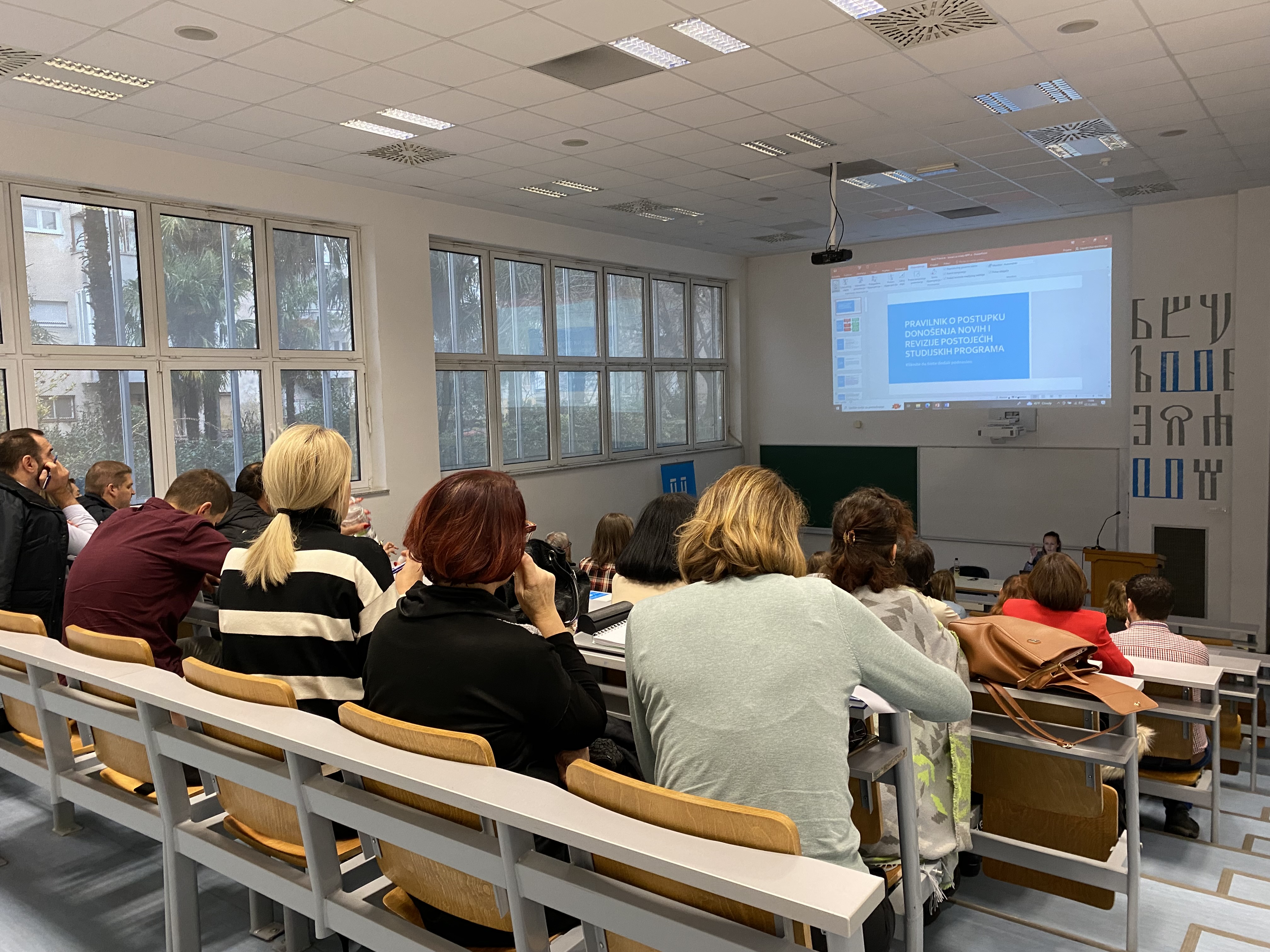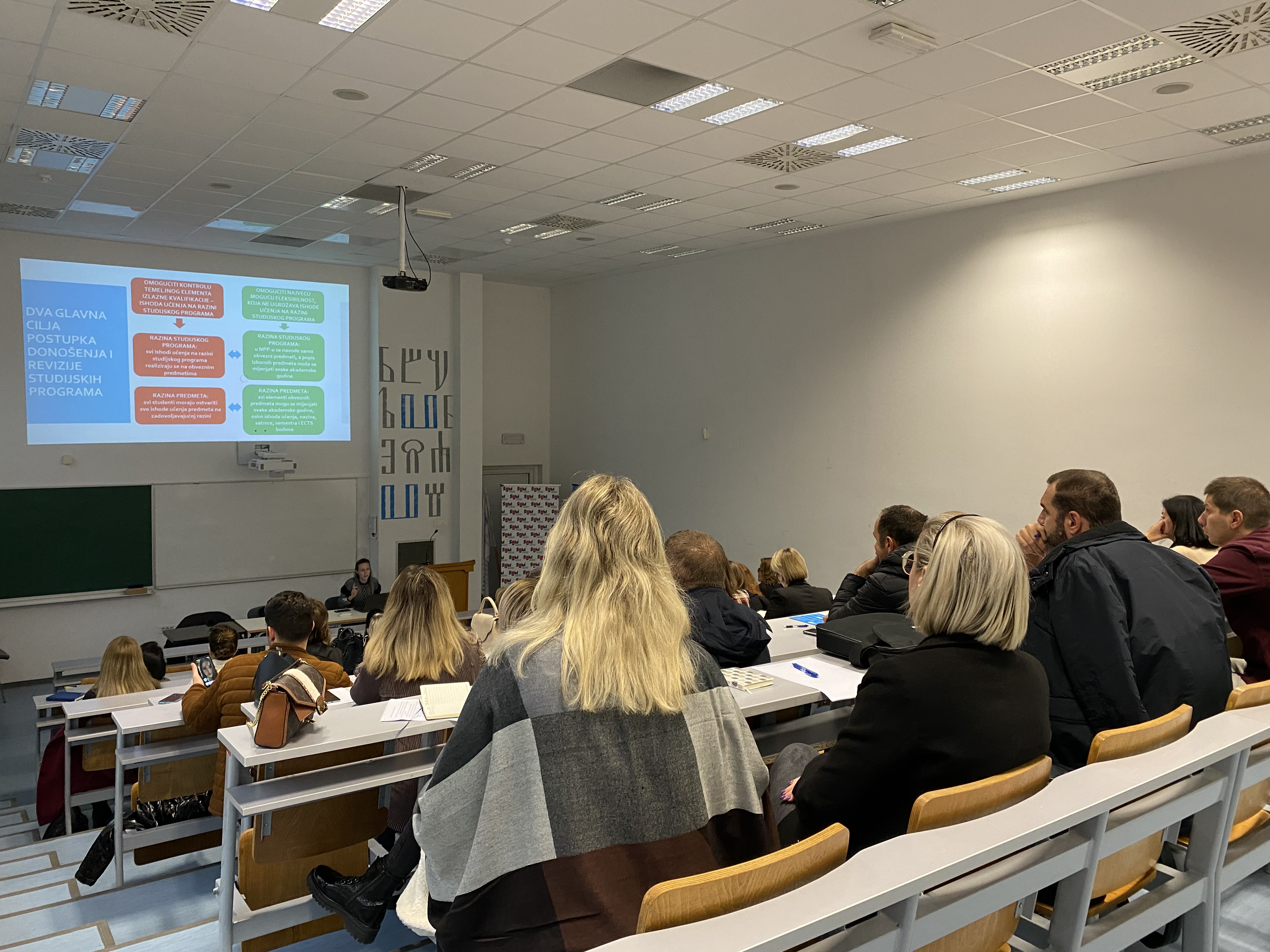 Radionicu je održala prof. dr. sc. Luciana Boban, voditeljica Ureda za osiguranje i unapređenje kvalitete Sveučilišta u Mostaru, koja je prilikom toga prezentirala novi Pravilnik o postupku donošenja novih i revizije postojećih studijskih programa, te plan izrade revidiranih nastavnih planova i programa, s posebnim osvrtom na izradu novih nastavnih programa (silabusa).