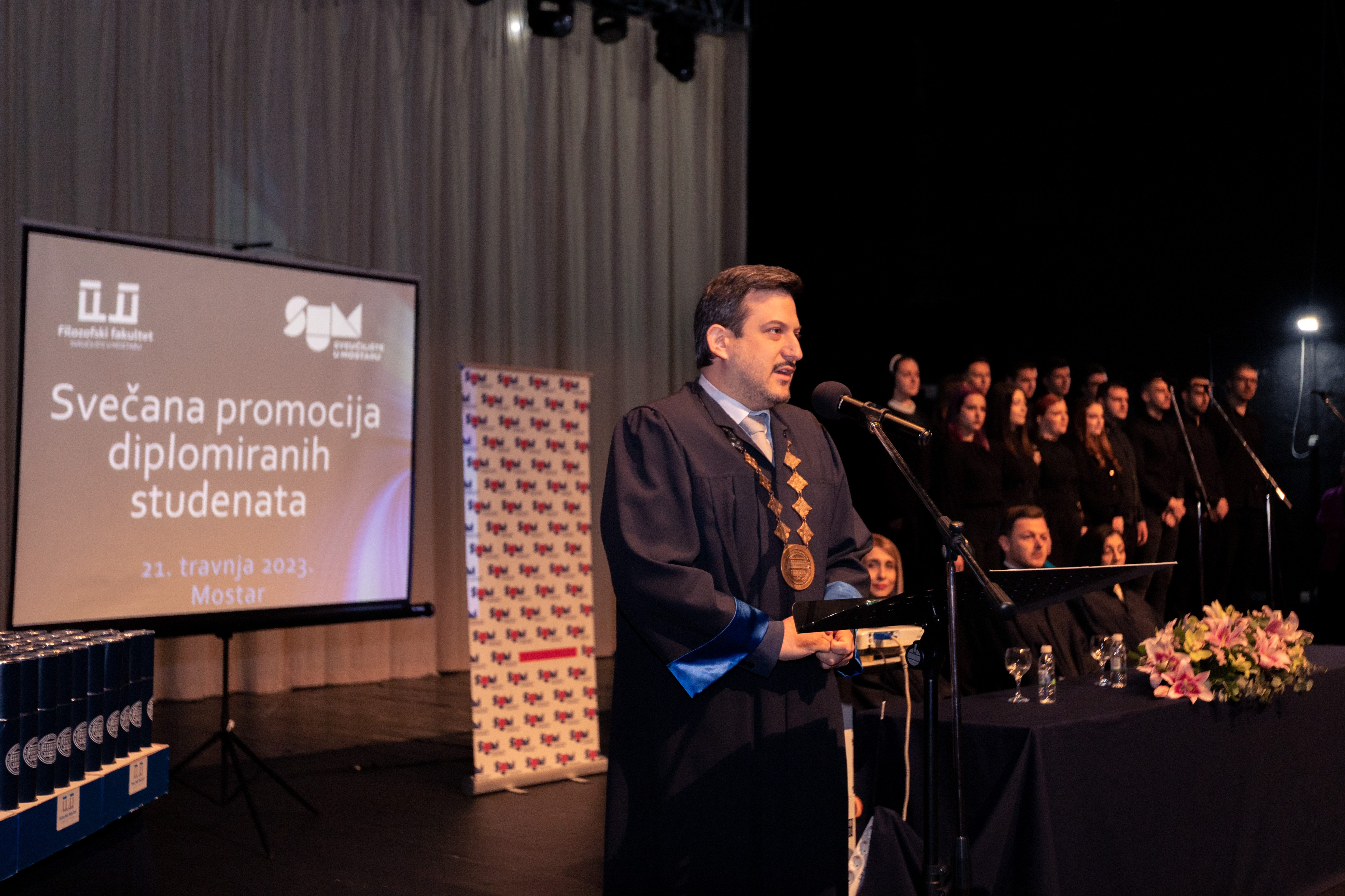 Svečana promocija i dodjela diploma studentima koji su završili studij na Filozofskom fakultetu Sveučilišta u Mostaru održana je u Hrvatskome domu hercega Stjepana Kosače. Promovirana su 143 diplomanda, od kojih je 71 prvostupnik i 72 magistara struke.