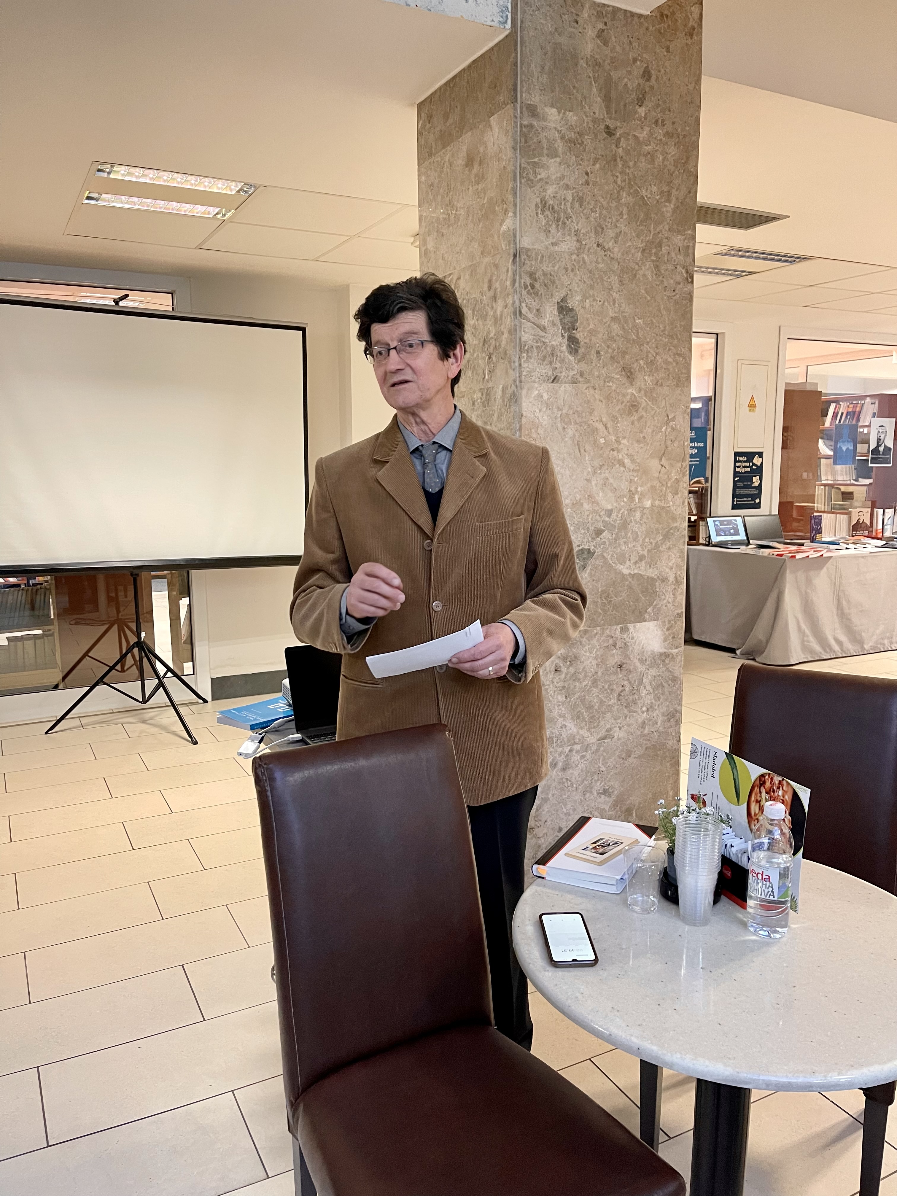 Prof. dr. sc. Antun Lučić sa studija Hrvatskog jezika i književnosti govorio je o važnosti knjige i kulture čitanja. održao je predavanje u kojem je iznio neke od povijesnih činjenica, obljetnice, 555 godina od Gutemberga, 505 godina od rođenja pjesnika vrta Antuna Sasina (i knjižnica je intelektualni vrt), 410 godina od tiskanja Epistole i evangelja fra Ivana Bandulavićeva, 1613., zatim 150 godina od  Matoševa rođenja, 100 godina od rođenja putopisca Matka Peića.