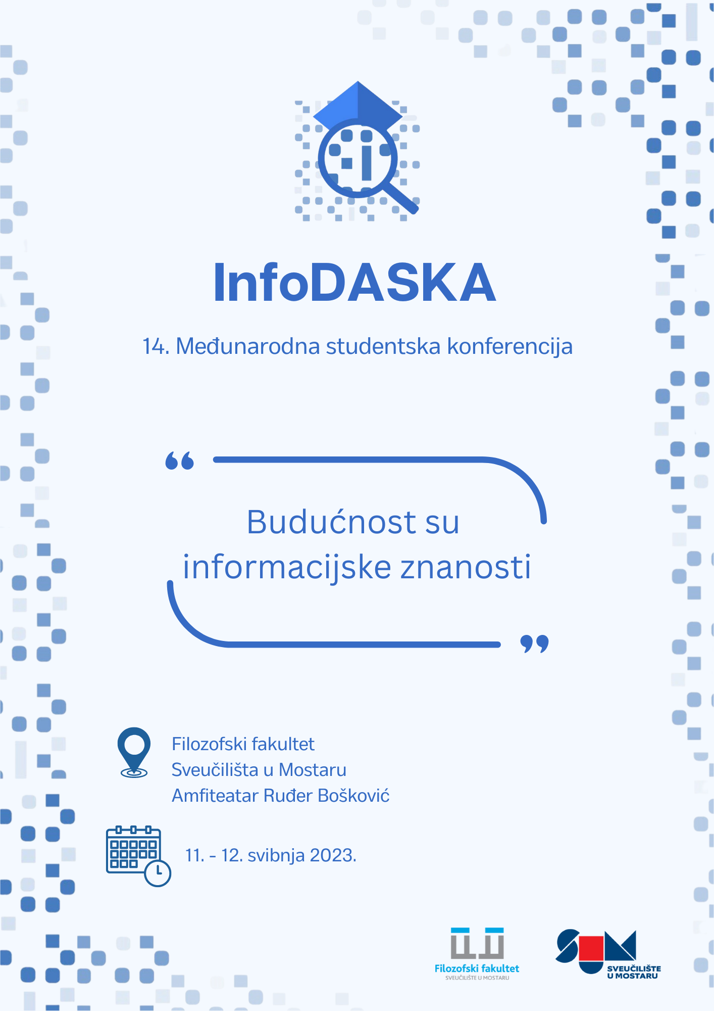 Studij Informacijskih znanosti s Klubom studenata informacijskih znanosti Filozofskog fakulteta Sveučilišta u Mostaru 11. i 12. svibnja 2023. godine domaćin je 14. međunarodne studentske konferencije InfoDASKA.