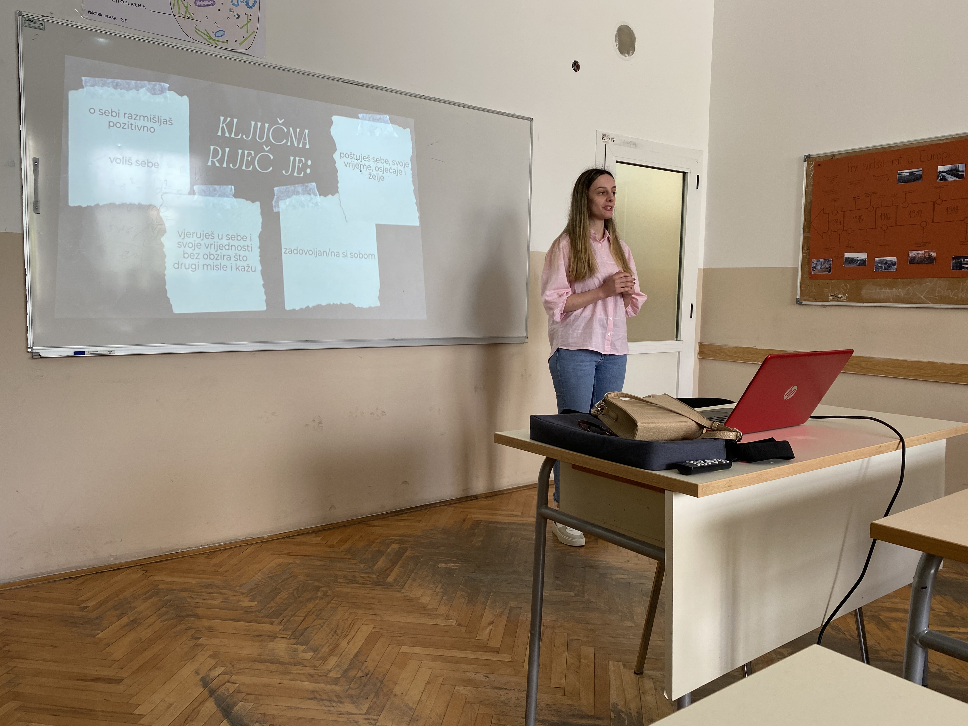 "Svakog novog dana, rastemo ja i moje samopoštovanje" bila je tema radionice održane u Srednjoj turističko-ugostiteljskoj školi u Mostaru. Radionicu je održala studentica Nina Raič.
