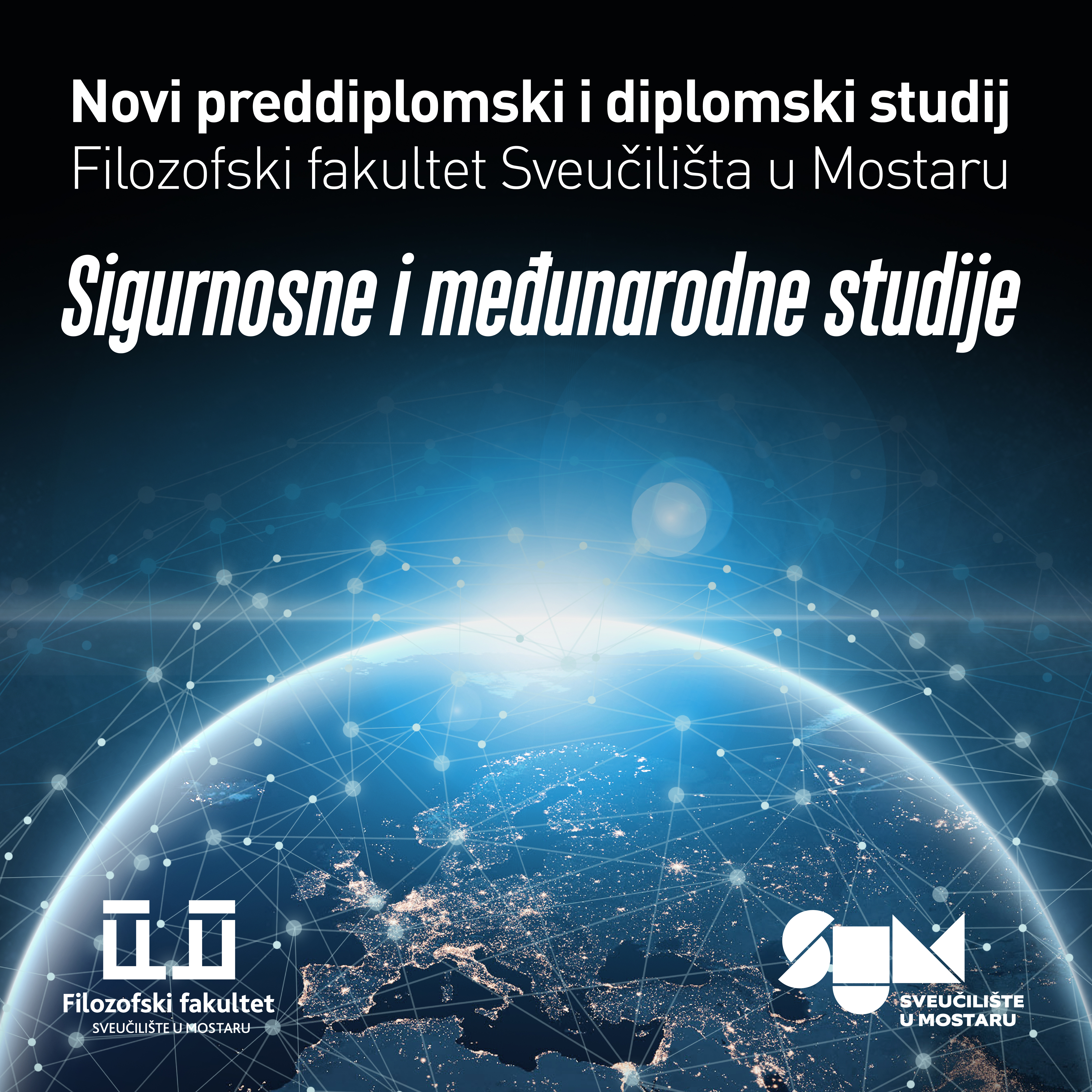 Filozofski fakultet Sveučilišta u Mostaru raspisao je natječaj za upis na diplomski studij Sigurnosnih i međunarodnih studija. Potencijalni kandidati biraju jedan od dva ponuđena smjera: Sigurnost te Međunarodne odnose i diplomaciju. Na oba smjera mogu se prijaviti kandidati koji su završili srodan bolonjski preddiplomski studij društvenih ili humanističkih znanosti te kandidati koji su završili predbolonjski srodan studij sa stečenim stupnjem više stručne spreme.