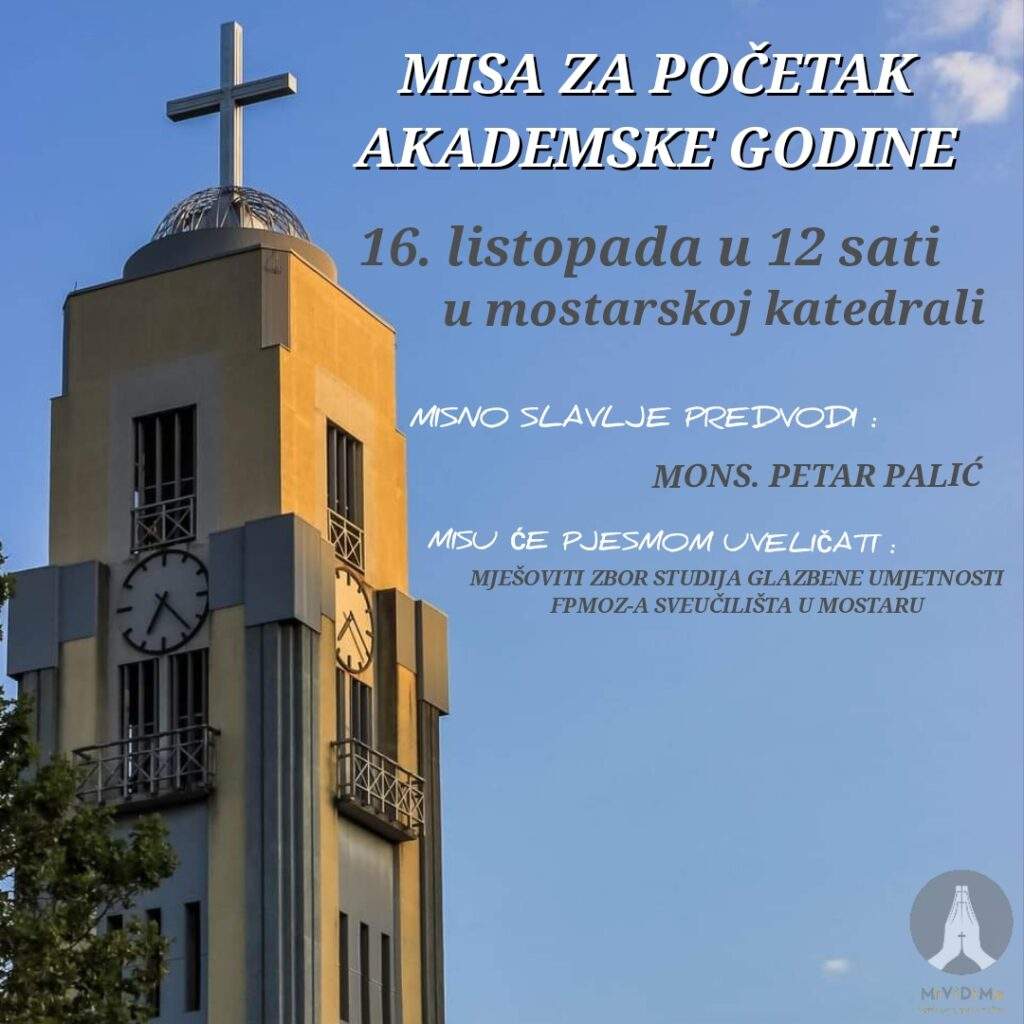 Sveta misa za početak nove akademske 2023./2024. godine održat će se u mostarskoj Katedrali Mariji Majci Crkve u ponedjeljak, 16. listopada 2023. u 12.00 sati.