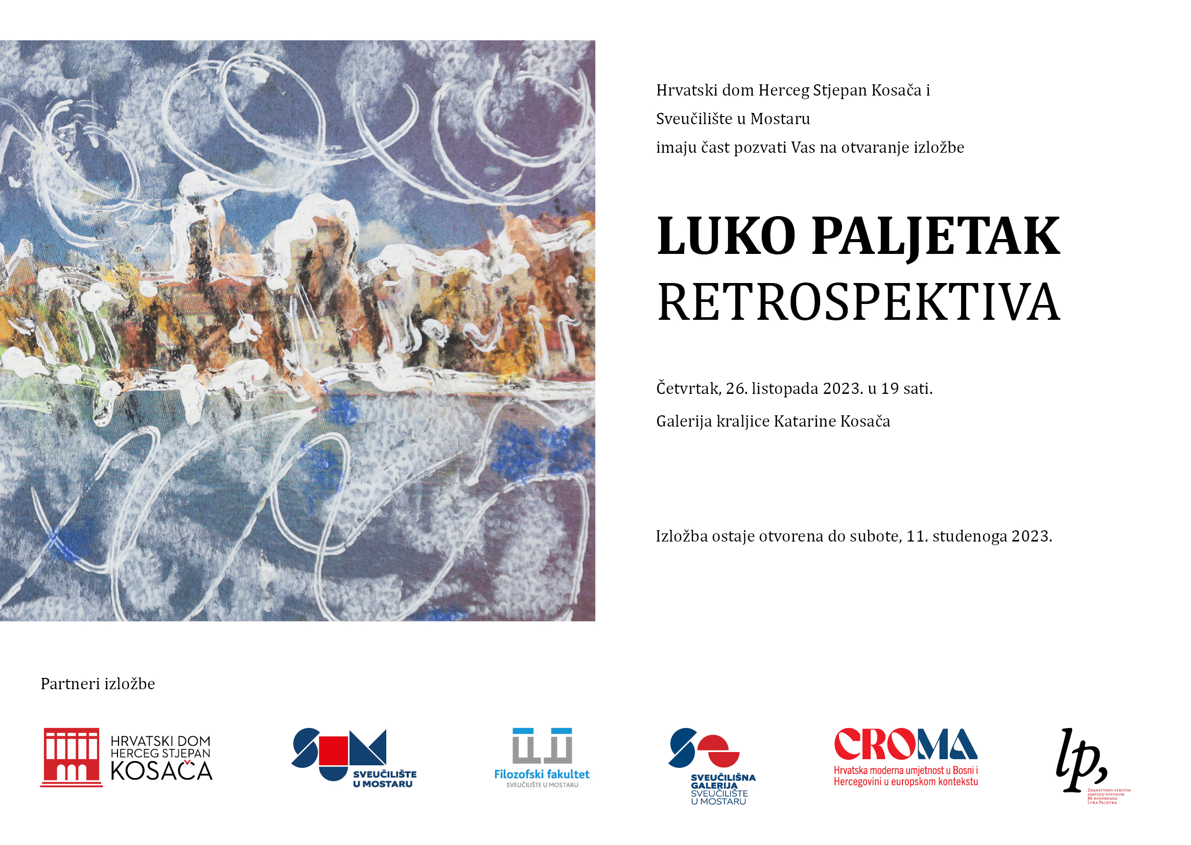 U suradnji Hrvatskog doma Herceg Stjepan Kosača i Sveučilišta u Mostaru, u Galeriji kraljice Katarine isti dan u 19.00 sati otvorit će se izložba „Luko Paljetak: Retrospektiva“, sukladno nazivu, prati Paljetkov likovni izričaj od školskih klupa do recentnih radova iz 2023. godine. Ova izložba je prva izložba retrospektivnog karaktera koja se Paljetku postavlja, a broji preko tristo crteža, akrila, kolaža i pastela. Tekst predgovora izložbi potpisuje Milan Bešlić, likovni i književni kritičar, naglašavajući utjecaj velikih umjetnika poput Pulitike i Dulčića kao one koji su Paljetku bili učitelji i tako ga obilježili još za ranog djetinjstva. Izložba „Luko Paljetak: Retrospektiva“ ostaje otvorena do 11. studenog 2023. godine za sve posjetitelje.