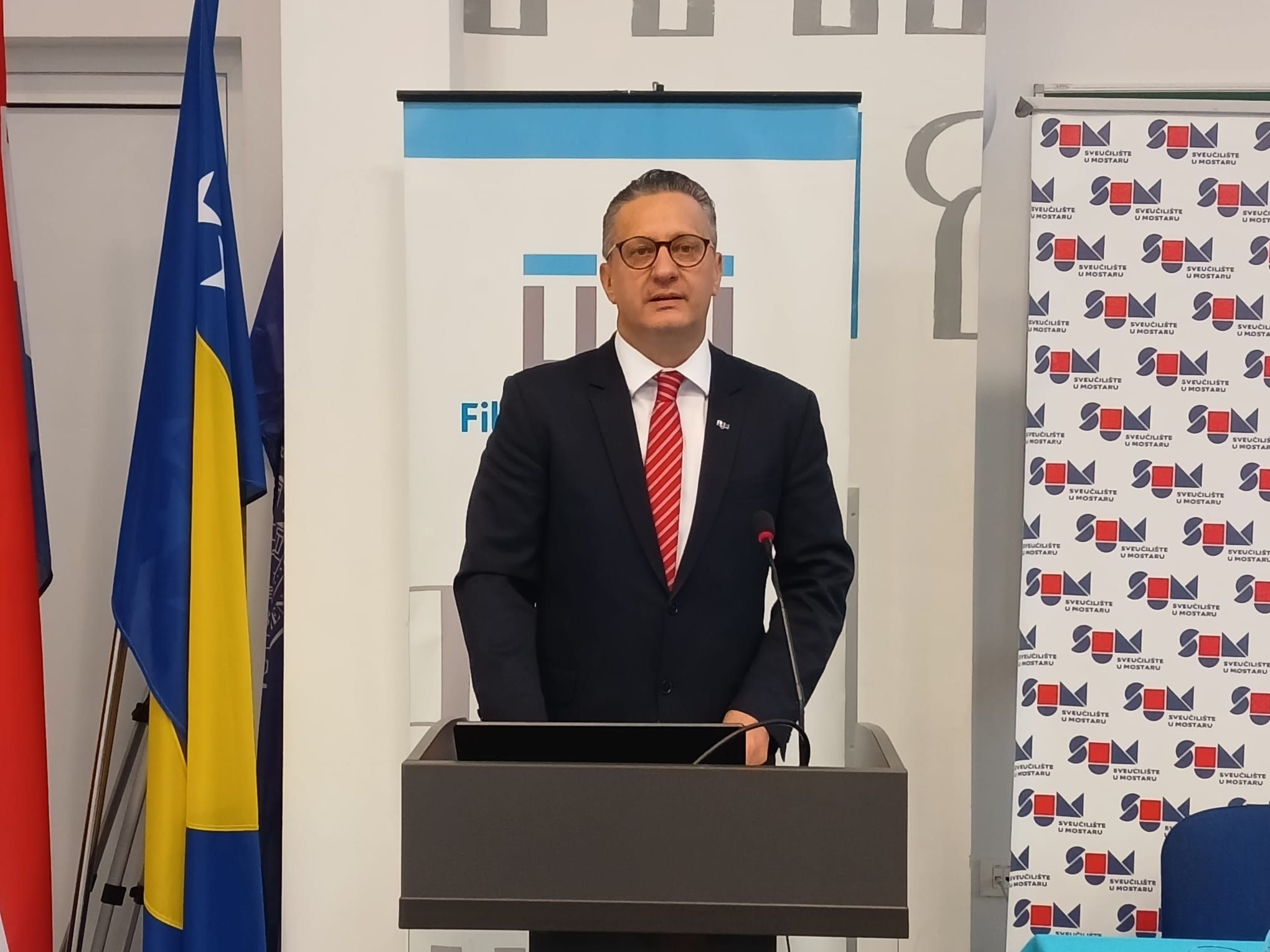 Rektor Sveučilišta u Mostaru prof. dr. sc. Zoran Tomić otvorio je Simpozij i zaželio da bude plodan. „Da nas predstavi kao one koji znaju, ali i mogu. Da se spoznajama izrečenim na Simpoziju oplemeni sveukupni hrvatski identitet i znanost.“