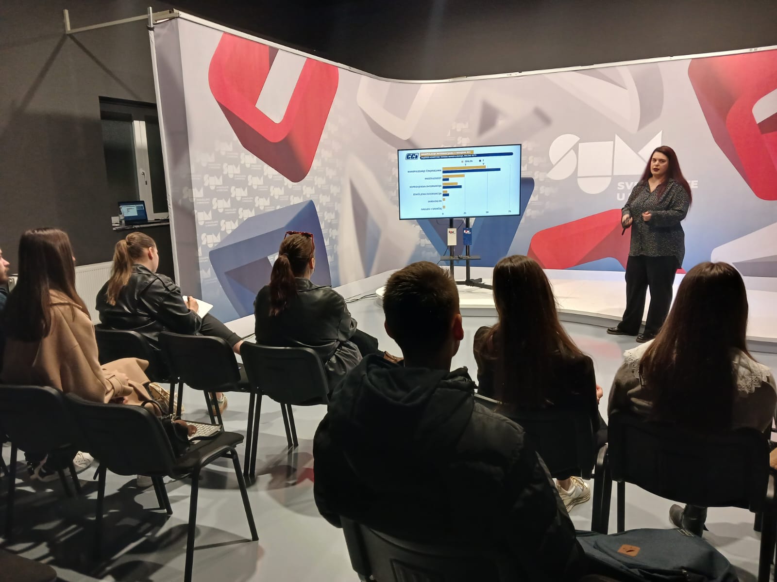 Na Televiziji Sveučilišta u Mostaru studentima Filozofskog fakulteta Sveučilišta u Mostaru radionicu o prepoznavanju manipulacije informacijama u medijskom prostoru održala je Ivona Mišković, projekt koordinatorica Centara civilnih inicijativa.