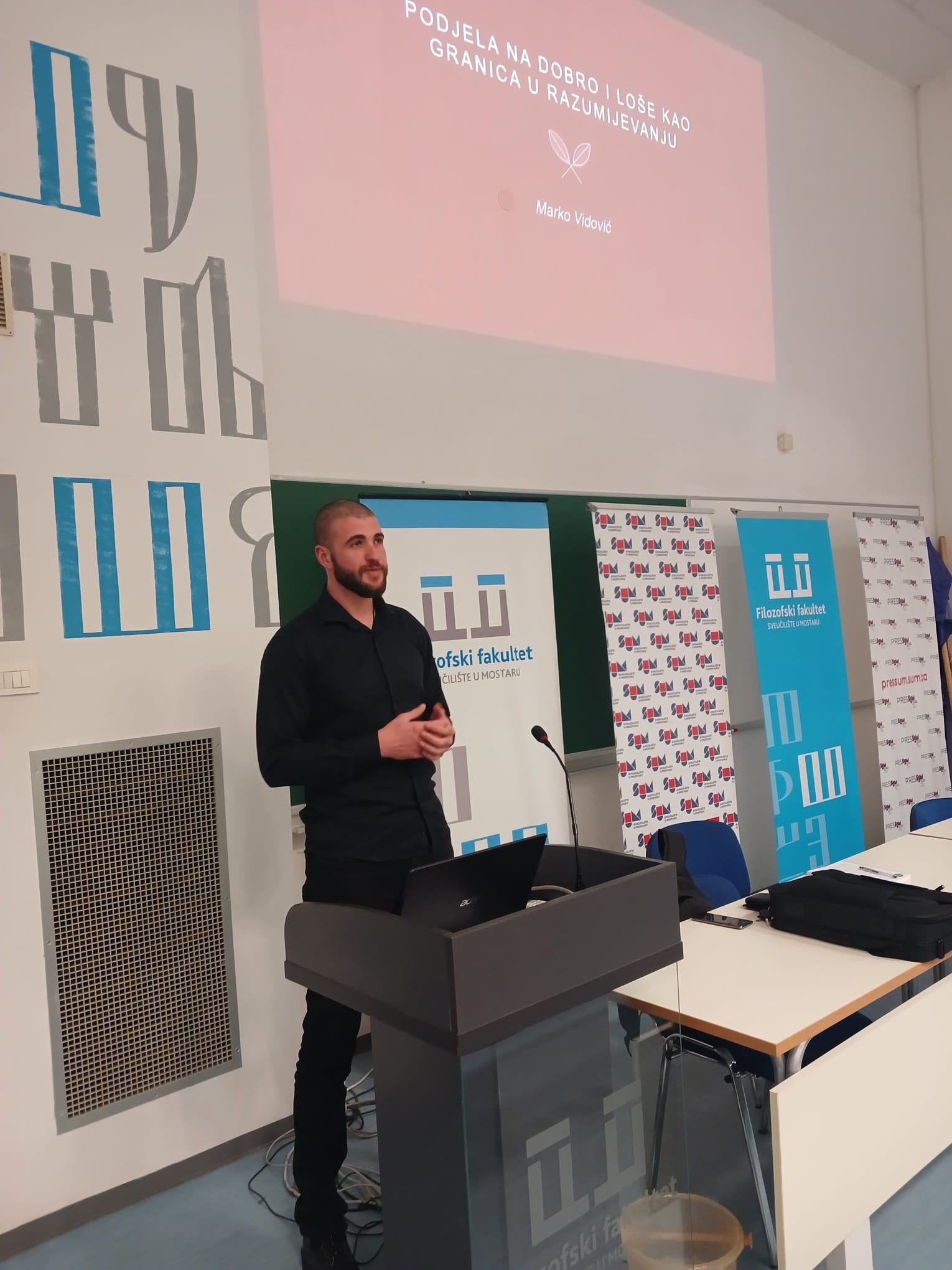 Radionicu, u organizaciji Savjetovališta za studente, pod nazivom “Podjela na dobro i loše kao granica u razumijevanju” održao je Marko Vidović, student diplomskog studija Psihologije Filozofskog fakulteta Sveučilišta u Mostaru.