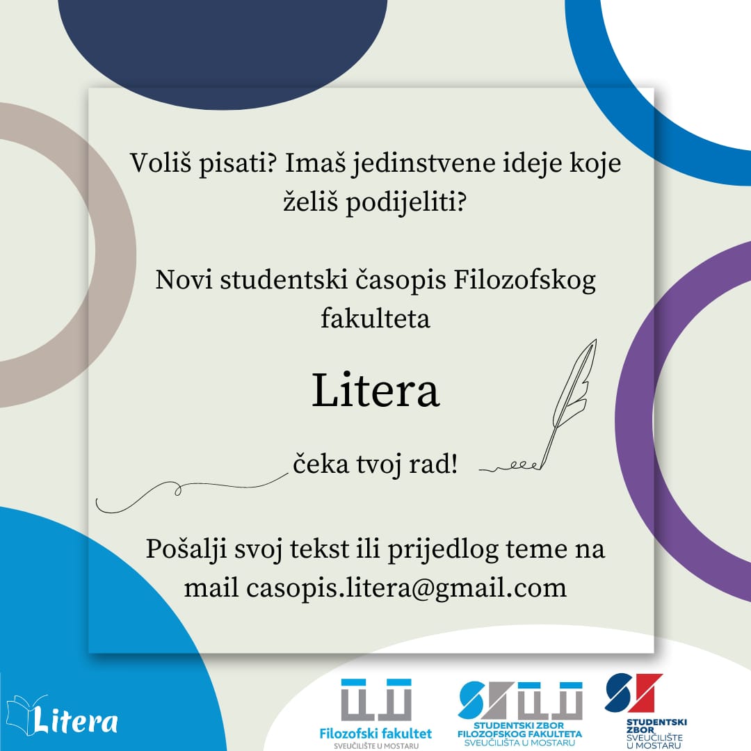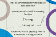 Uredništvo studentskog časopisa „Litera“ raspisuje obavijest o prijavi studentskih rado za objavljivanje u prvom broju časopisa.