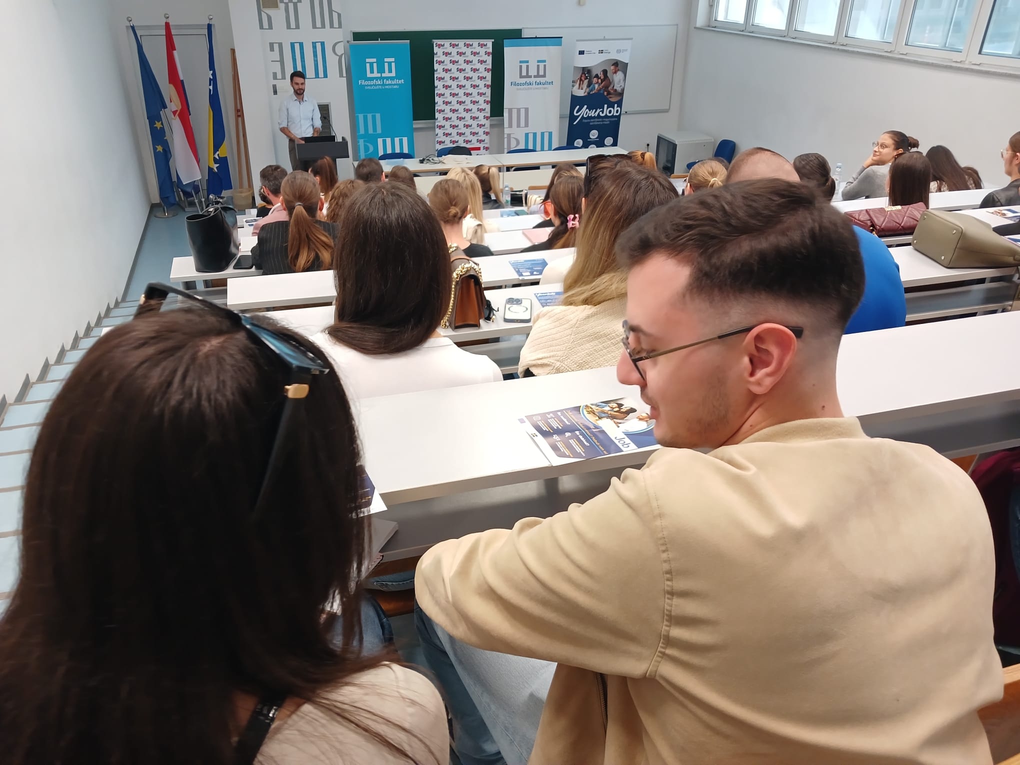 Informativna sesija o projektu YourJob održana je na Filozofskom fakultetu SUM-a te je predstavljen projekt, njegovi ciljevi i mogućnosti koje pruža mladim osobama na području grada Mostara i Čapljine.