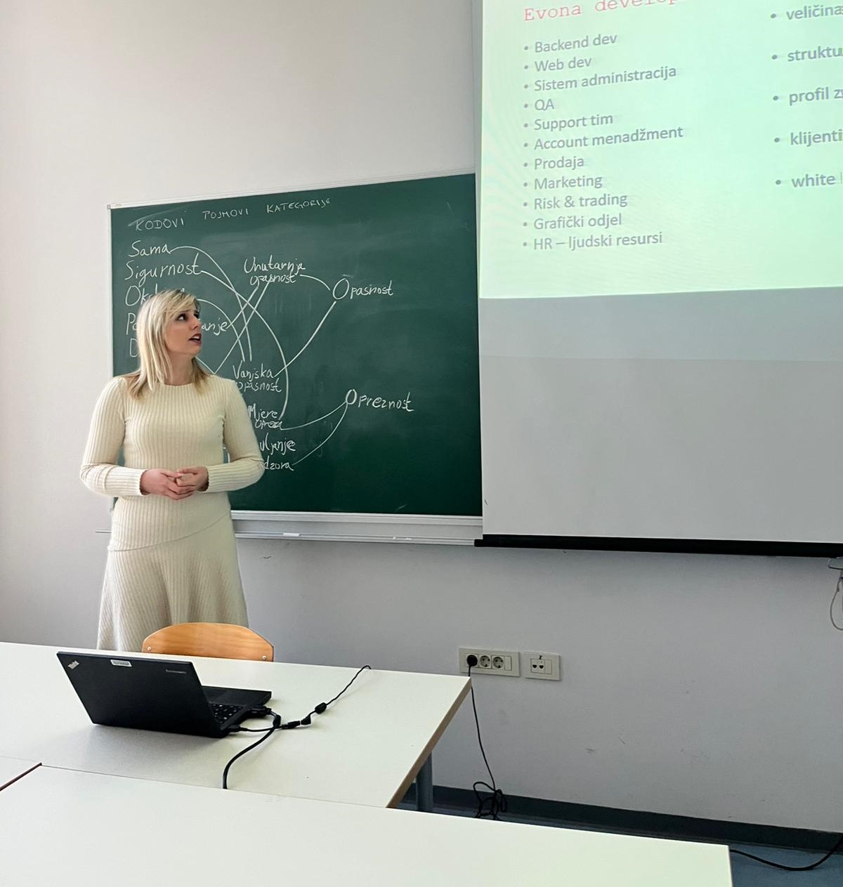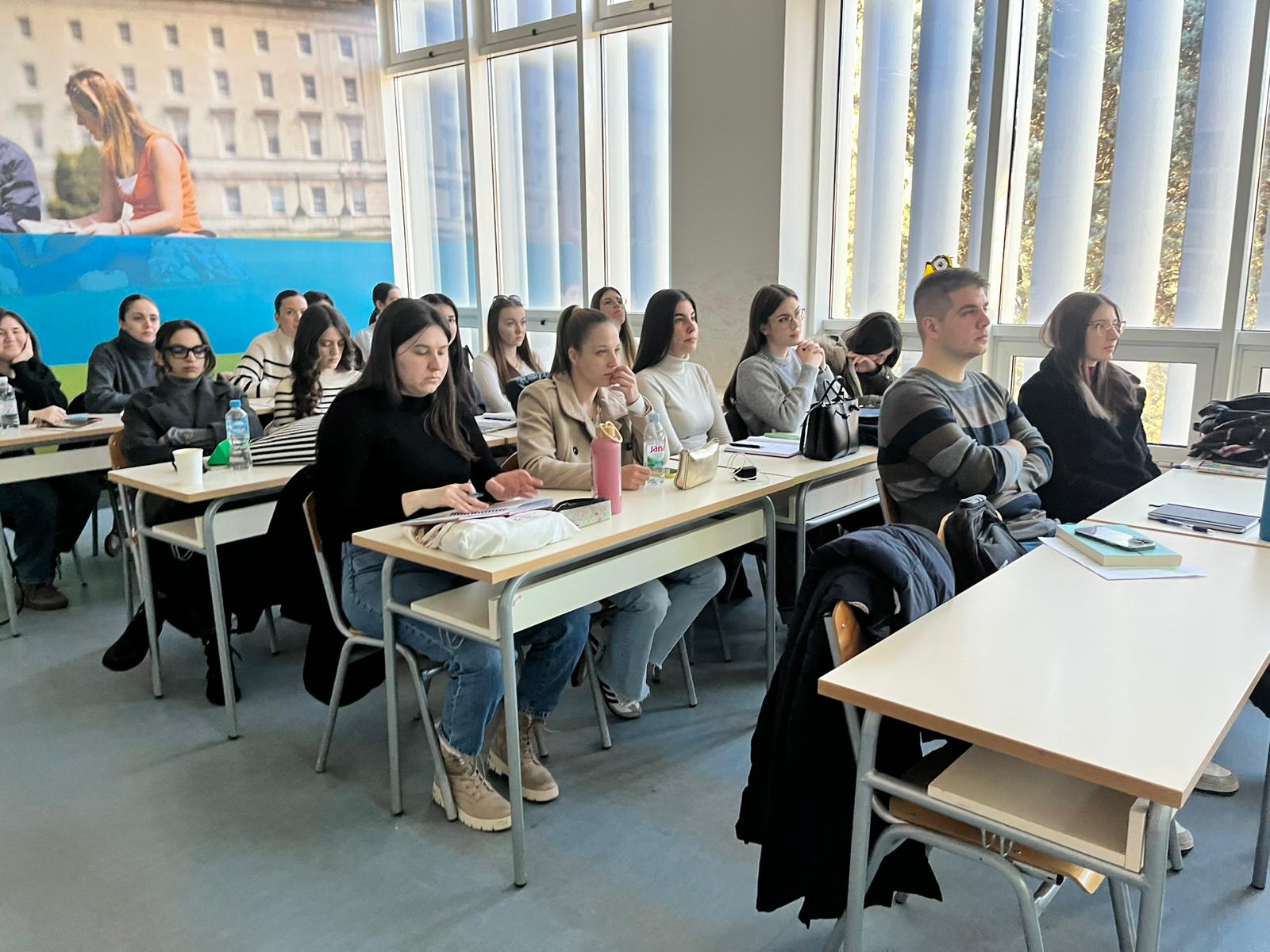 Na Filozofskom fakultetu Sveučilišta u Mostaru studentima psihologije predavanje o temi „Profesionalna obuka na radnom mjestu – iskustva iz prakse“ održala je alumna studija Psihologije, mah. psyh. Martina Zovko.