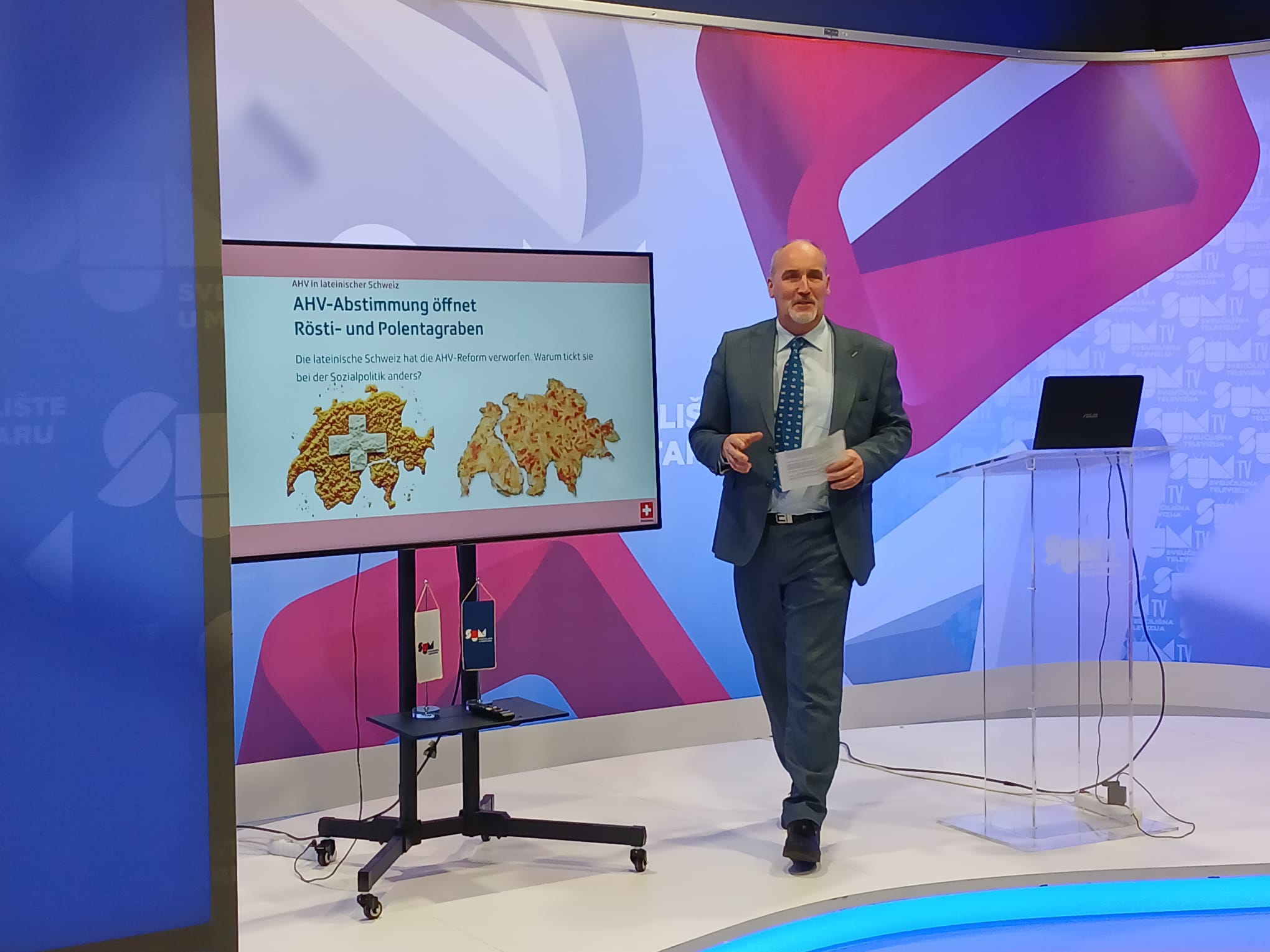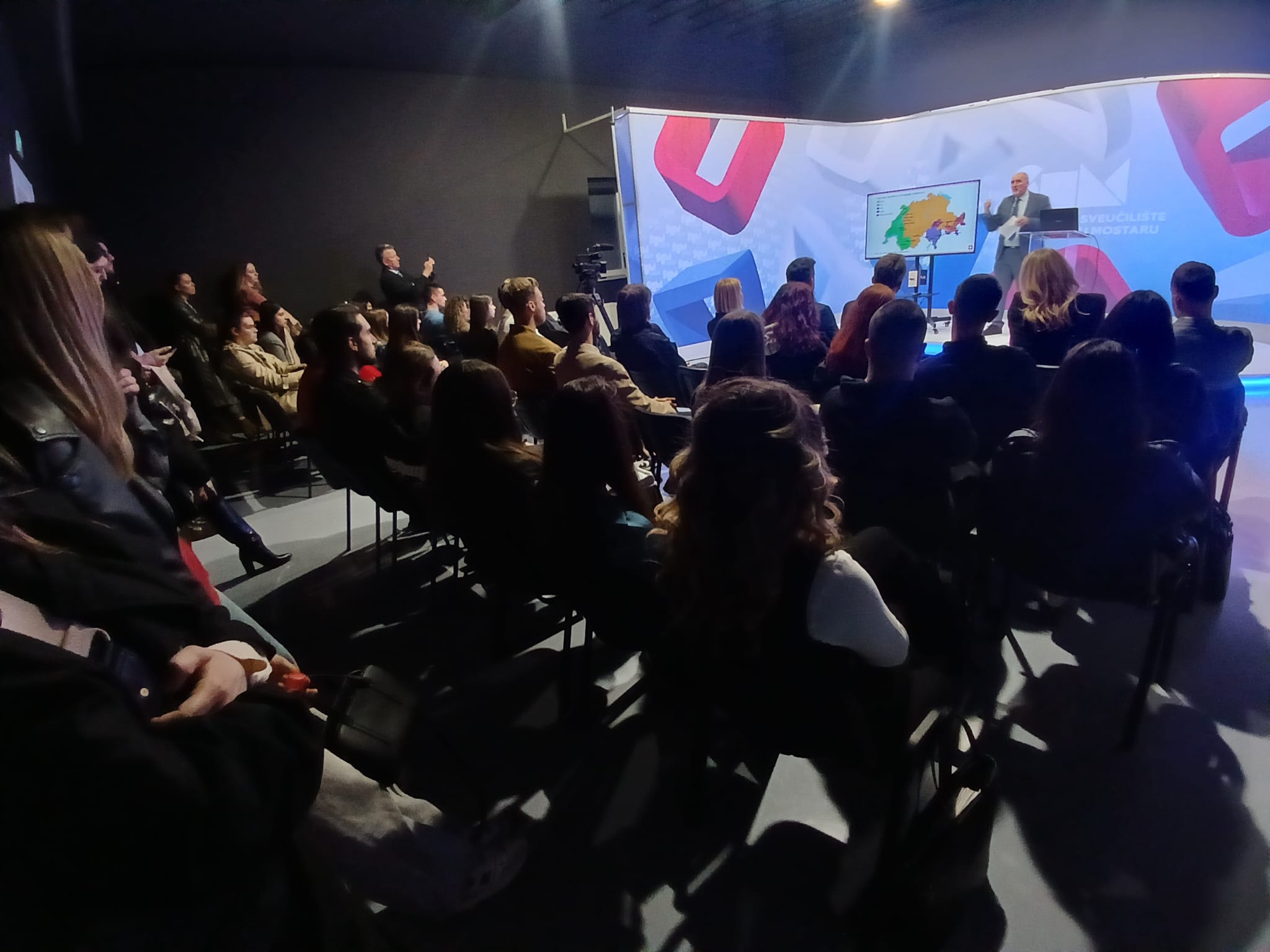 Na Filozofskom fakultetu Sveučilišta u Mostaru veleposlanik Švicarske u Bosni i Hercegovini Nj. E. Gabriele Derighetti održao je predavanje studentima na SUM TV-u o političkom inženjeringu.