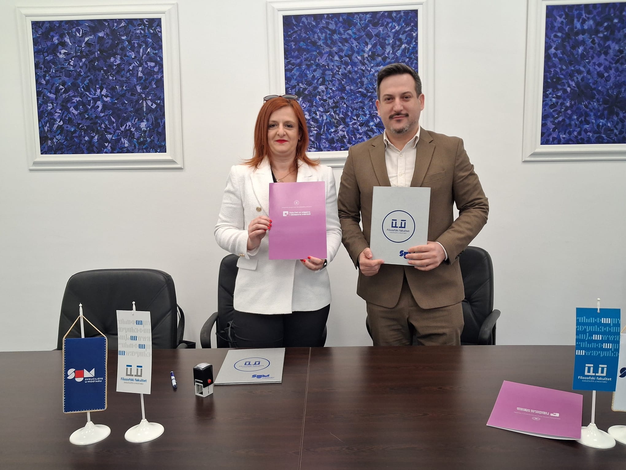 Dekan Filozofskog fakulteta Sveučilišta u Mostaru prof. dr. sc. Dražen Barbarić i dekanica Fakulteta za odgojne i obrazovne znanosti Sveučilišta Josipa Jurja Strossmayera u Osijeku prof. dr. sc. Emina Berbić Kolar potpisali su Sporazum o akademskoj, znanstvenoj i stručnoj suradnji.