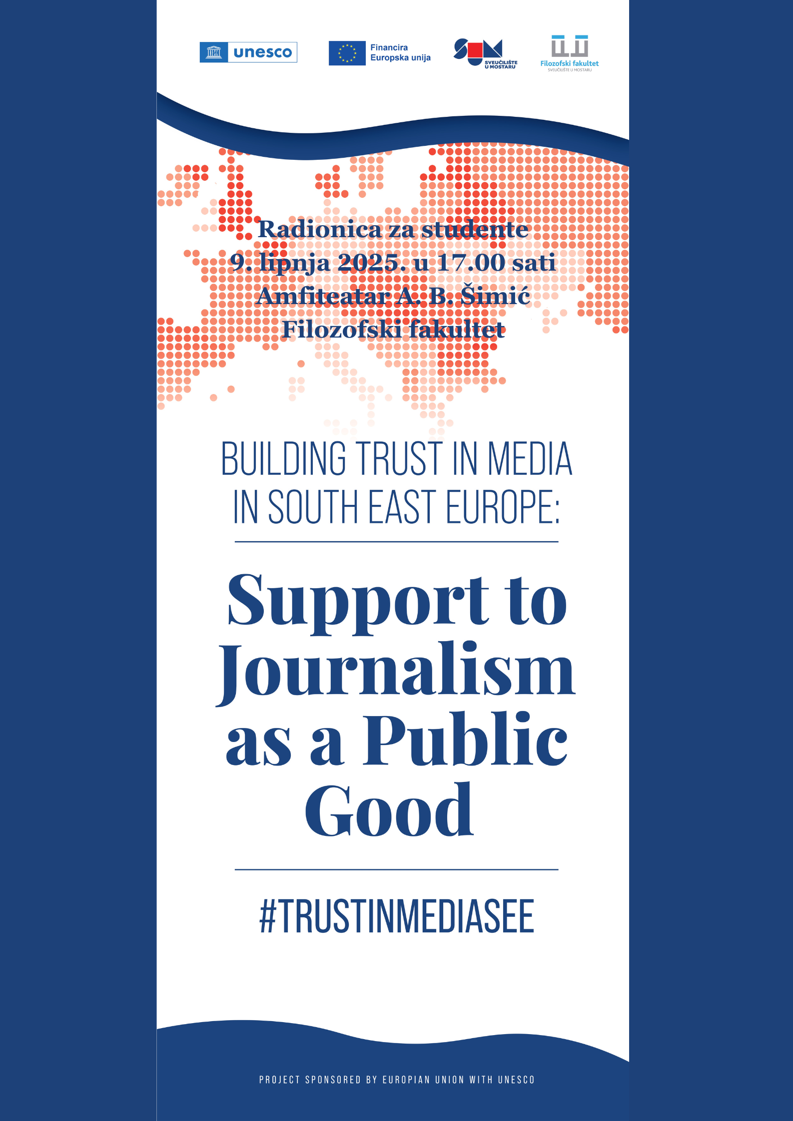 Na Filozofskom fakultetu Sveučilišta u Mostaru bit će održana radionica za studente i webinar za medije na temu „Building Trust in Media in South-East Europe: Support to Journalism as a Public Good“.