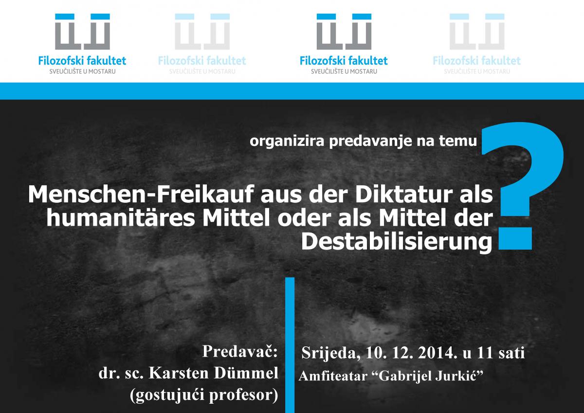 Predavanje na temu " Menschen-Freikauf aus der Diktatur als humanitäres Mittel oder als Mittel der Destabilisierung?"