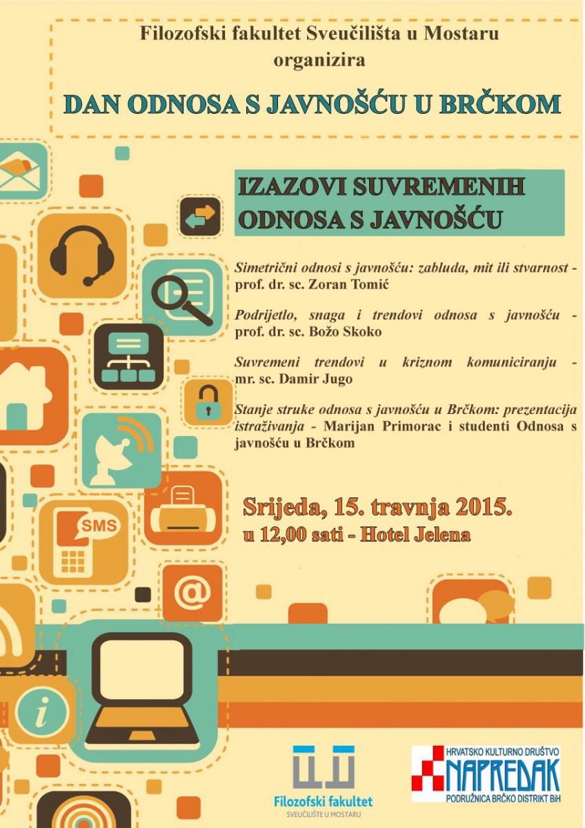 U sklopu Dana odnosa s javnošću u Brčkom 15. travnja (srijeda) u hotelu „Jelena“ u 12.00 sati bit će održano predavanje na temu: Izazovi suvremenih odnosa s javnošću.