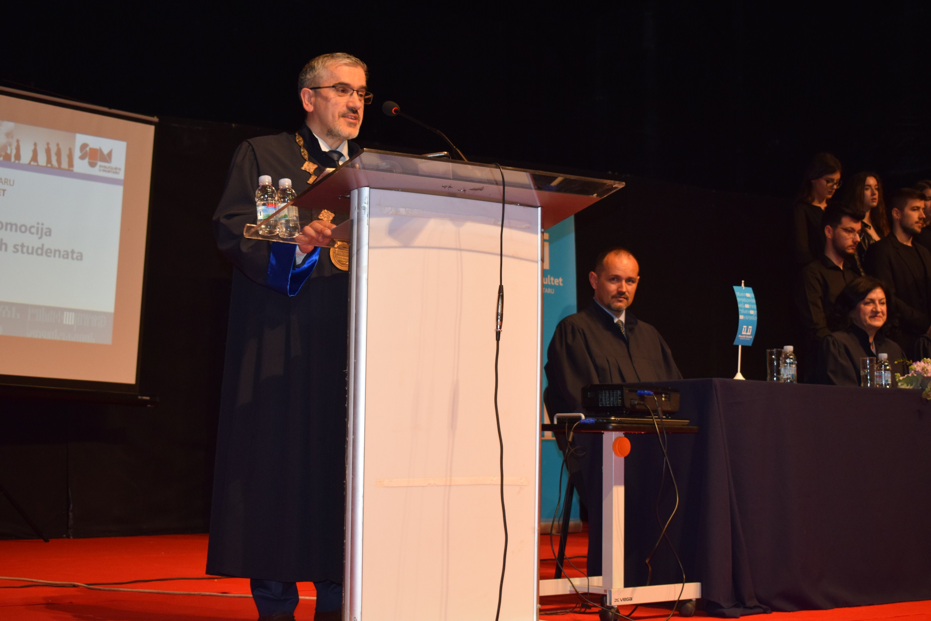 „Želim vam cjelovitost duha, ljubav prema znanju i kulturi, čestitost mišljenja i jednostavnost života nezagađenog svakovrsnom ideologijom“, poručio je diplomandima dekan Musić.