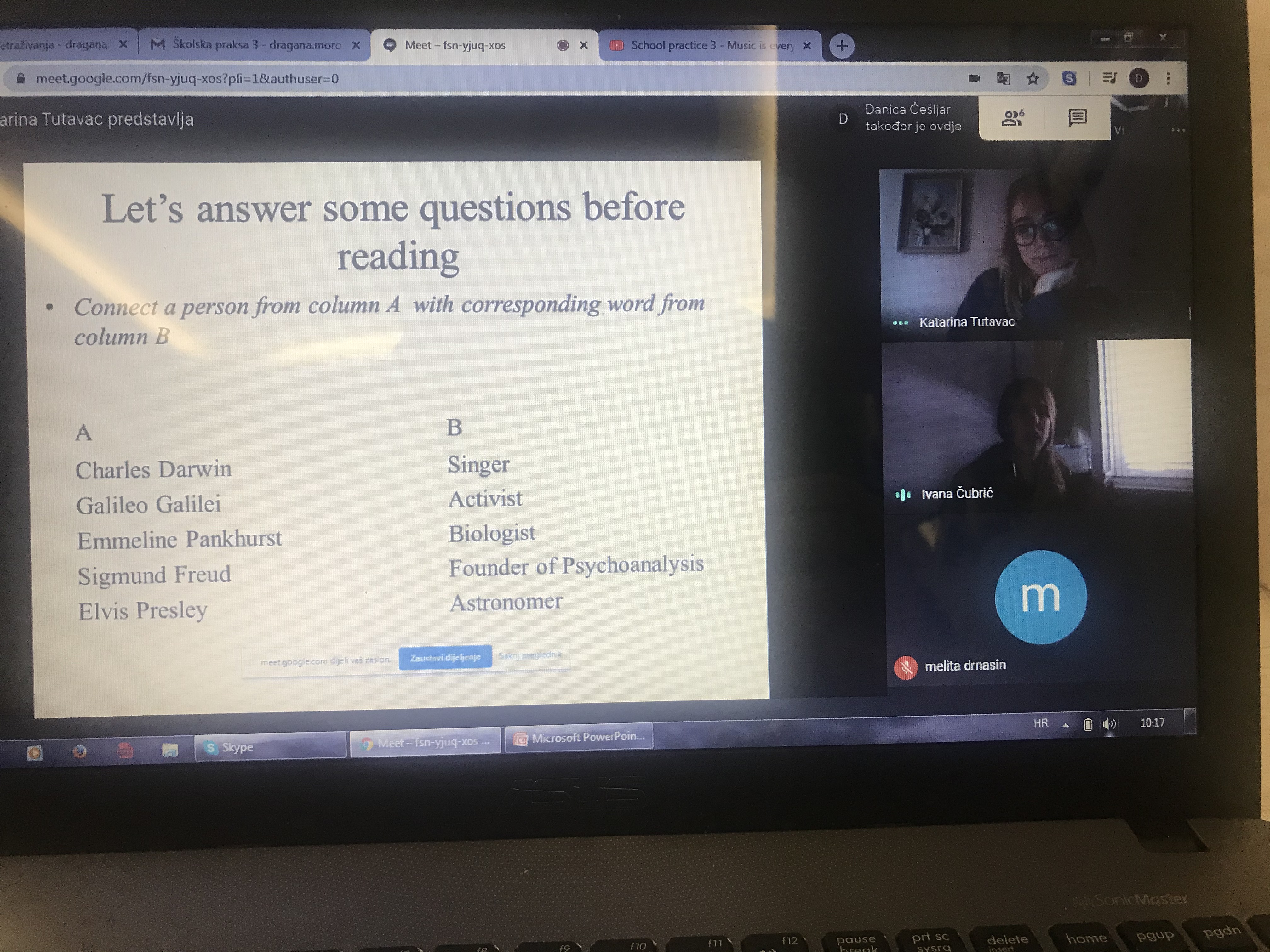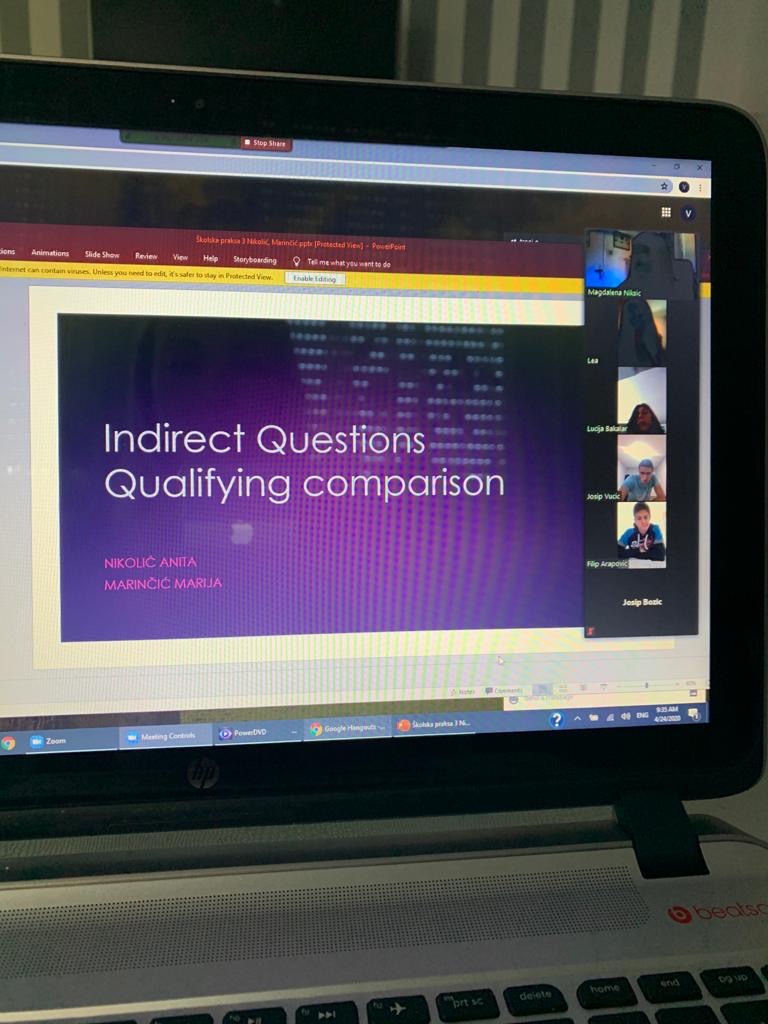 Studentice i studenti druge godine diplomskog studija engleskog jezika i književnosti, svojim angažmanom na kolegiju Školska praksa 3, pokazali su izvrsne vještine u izradi prezentacija na zadane teme nastavnih jedinica te su njihove prezentacije profesorice engleskog jezika u Gimnaziji fra Grge Martića, Gimnaziji Mostar, Srednjoj likovnoj školi Gabrijela Jurkića i Srednjoj strojarskoj školi Fausta Vrančića prezentirale svojim učenicima na različitim platformama te su na taj način upotpunile svoj rad i aktivnosti u nastavi.