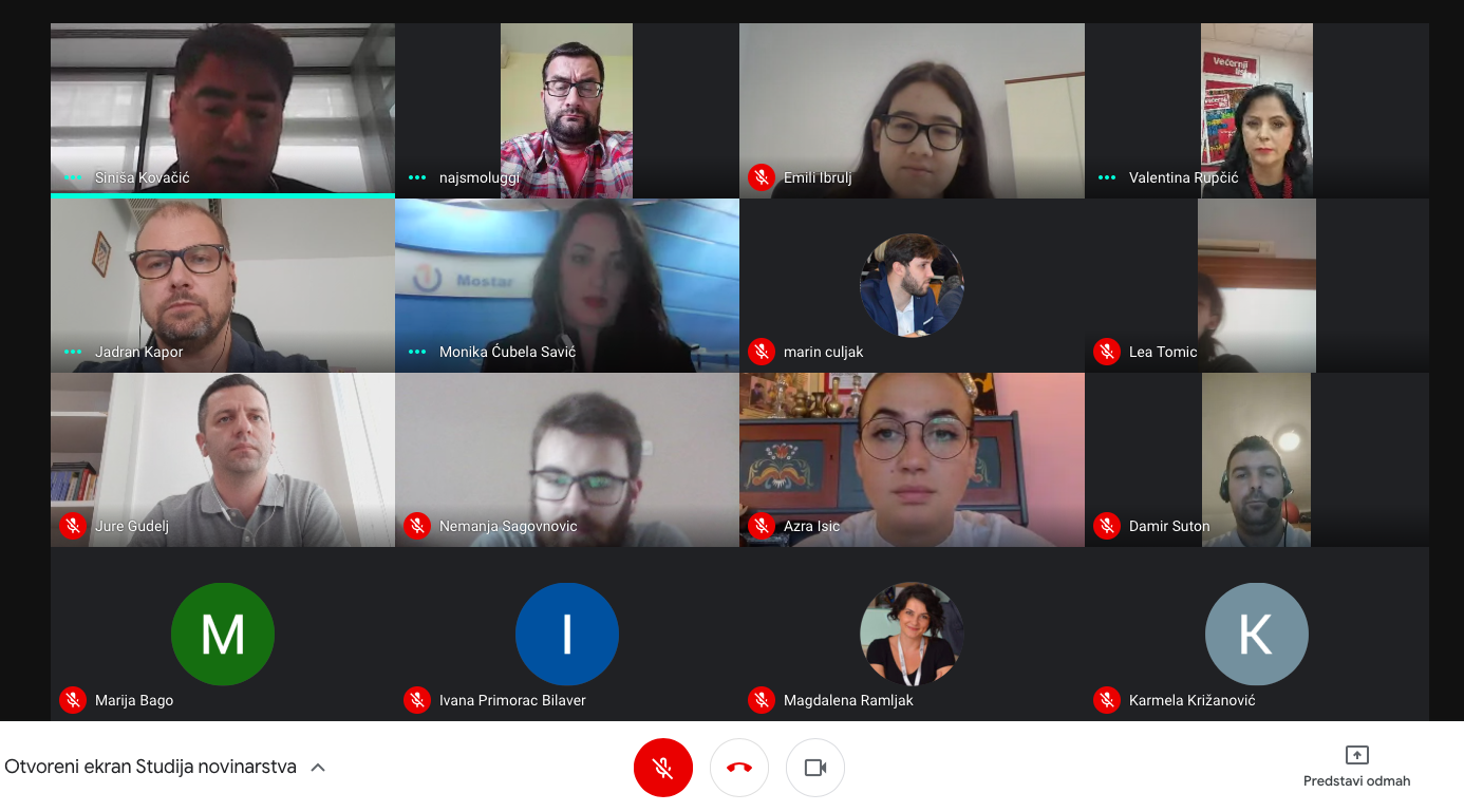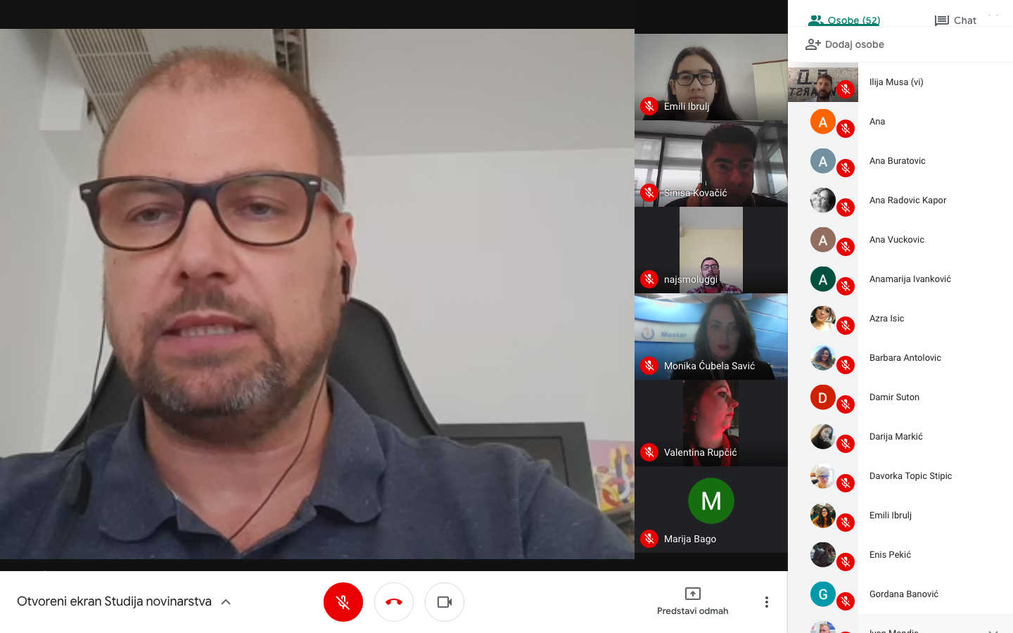 Studij novinarstva Filozofskoga fakulteta Sveučilišta u Mostaru i Udruga studenata novinarstva „PRESS“ održali su Otvoreni ekran Studija novinarstva preko aplikacije Google Meet.