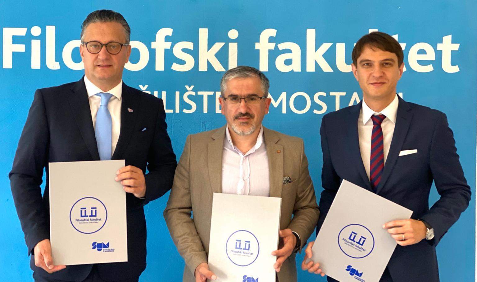 Sporazum su potpisali rektor Sveučilišta u Mostaru prof. dr. Zoran Tomić, dekan Filozofskoga fakulteta prof. dr. Ivica Musić i doc. dr. Damir Jugo, dekan Edward Bernays Visoke škole za komunikacijski menadžment.