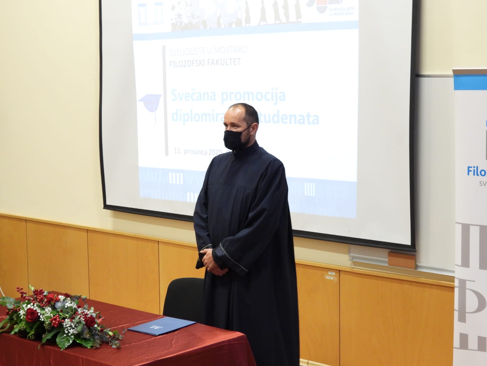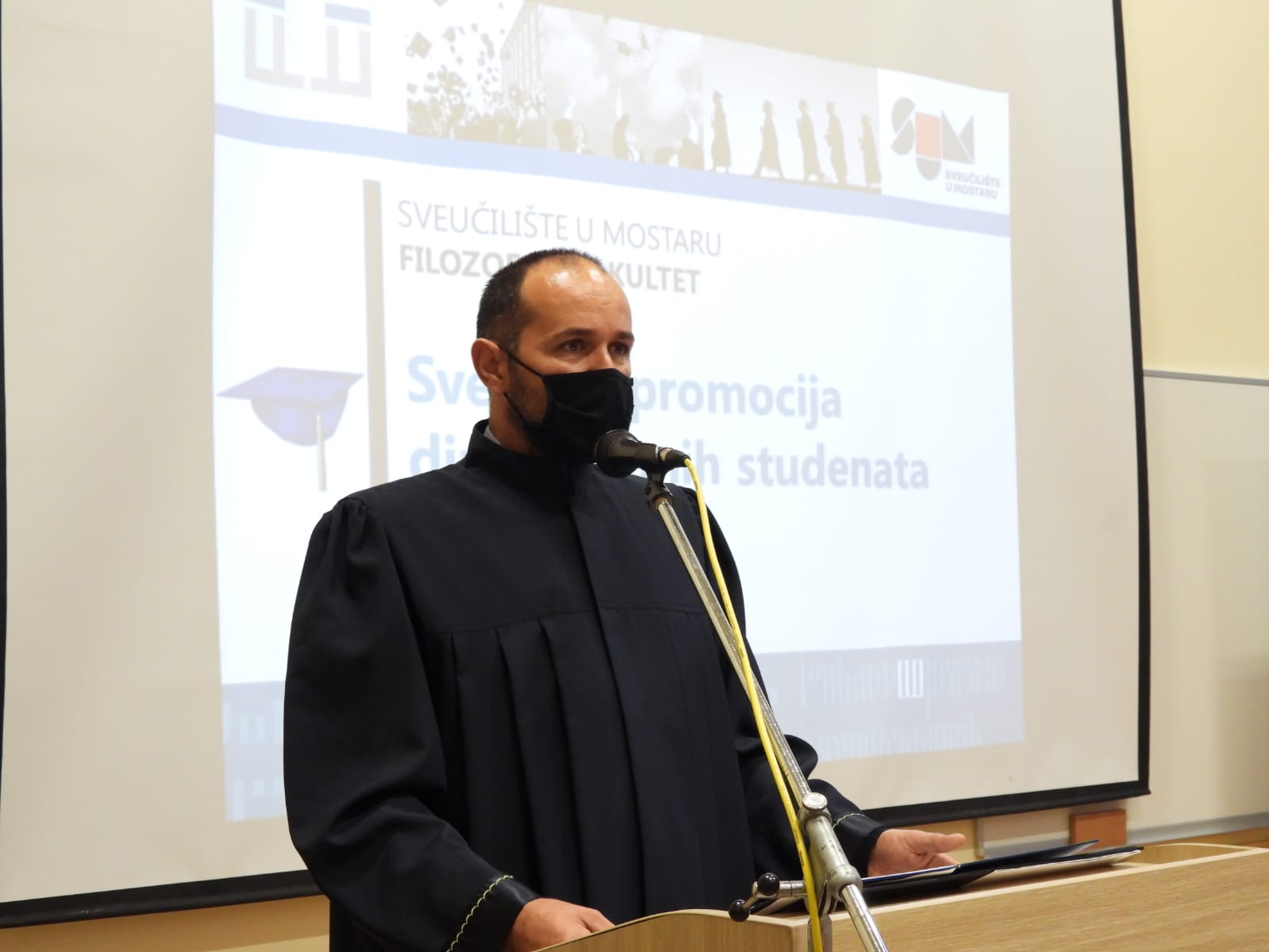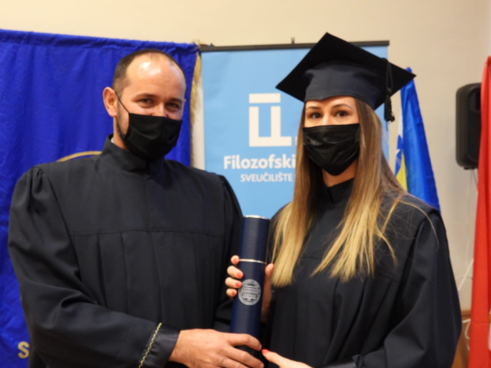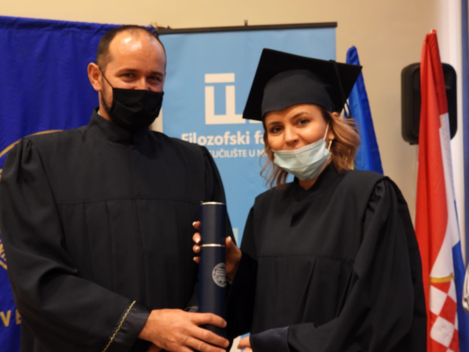 Diplome je uručio prodekan za znanost Filozofskoga fakulteta prof. dr. sc. Mate Buntić, koji je sve pozdravio uime rektora Sveučilišta u Mostaru prof. dr. sc. Zorana Tomića, dekana Filozofskoga fakulteta prof. dr. sc. Ivice Musića te u svoje ime. Prodekan Buntić istaknuo je da je ovo izniman dan za Sveučilište koje slavi svoju 43. obljetnicu utemeljenja.