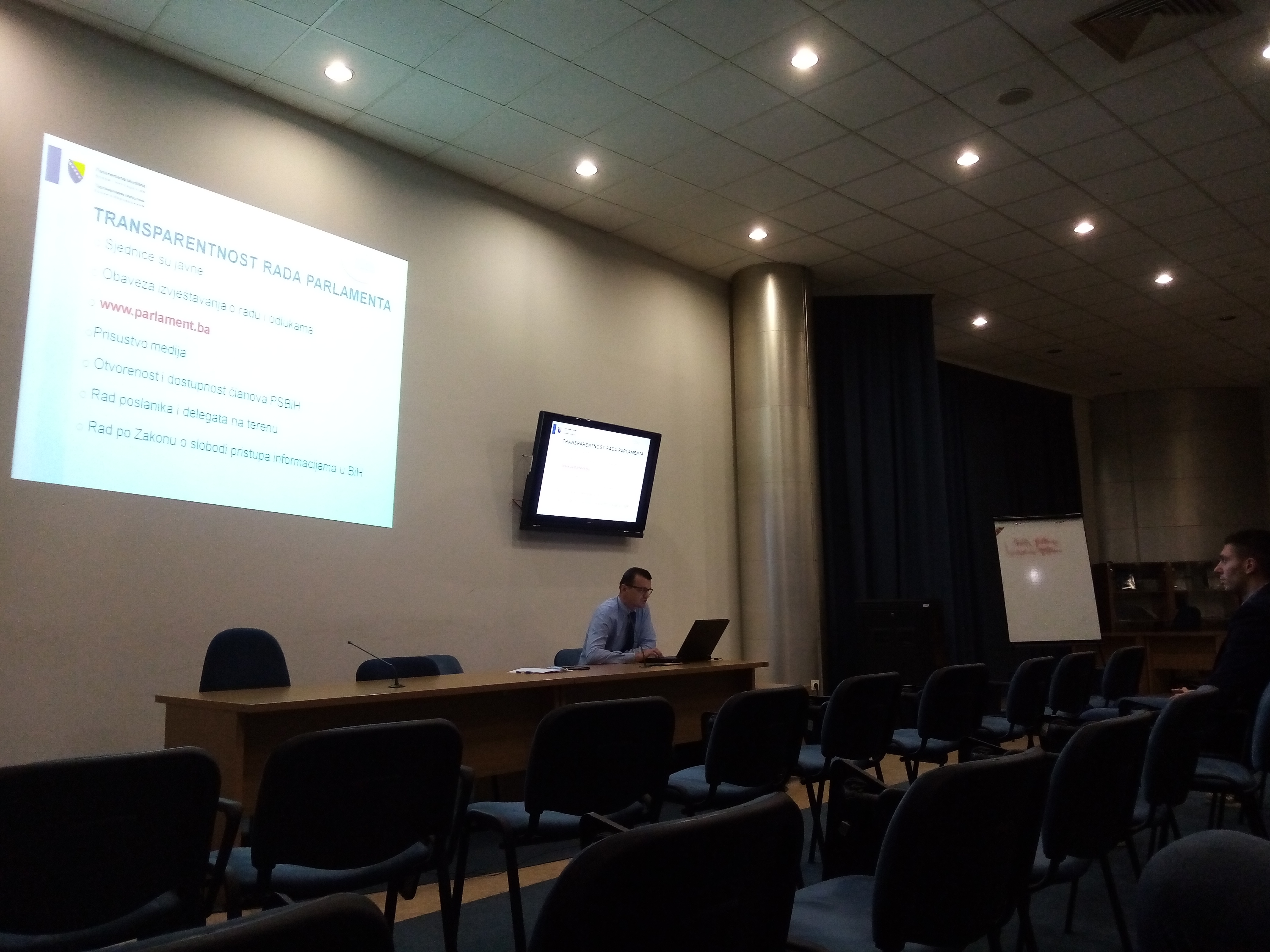 Ovaj državni službenik studente politologije Filozofskoga fakulteta SUM-a iz praktičnog iskustva upoznao s radom, ustrojstvom i osnovnim funkcijama nositelja zakonodavne vlasti u Bosni i Hercegovini te ih je proveo kroz sve važnije dvorane u zgradi.