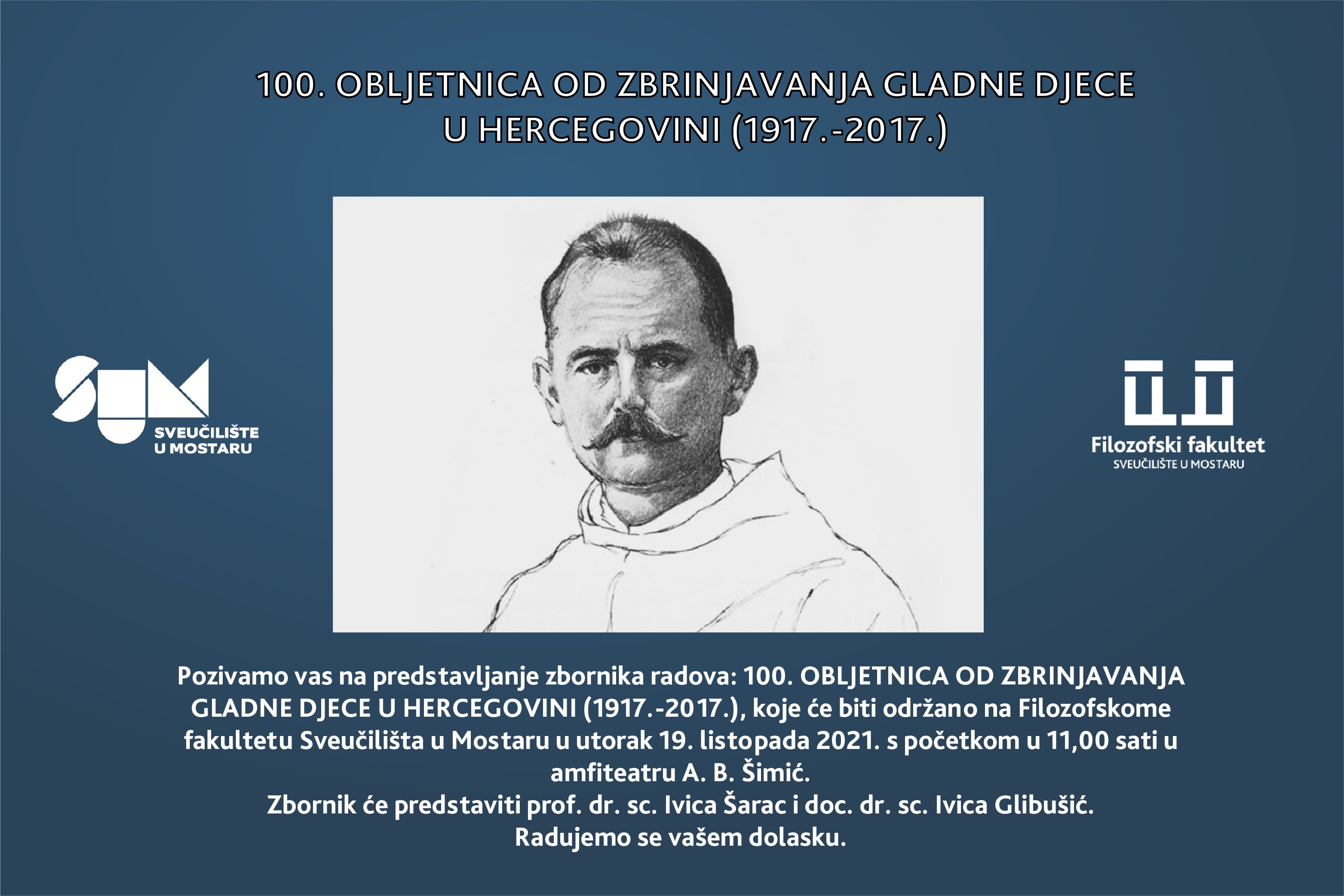 U sklopu manifestacije Didakovi dani 2021. bit će održano predstavljanje zbornika radova: 100. obljetnica od zbrinjavanja gladne djece u Hercegovini (1917.-2017.) na Filozofskome fakultetu Sveučilišta u Mostaru u utorak 19. listopada 2021. u 11,00 sati u amfiteatru A. B. Šimić.
