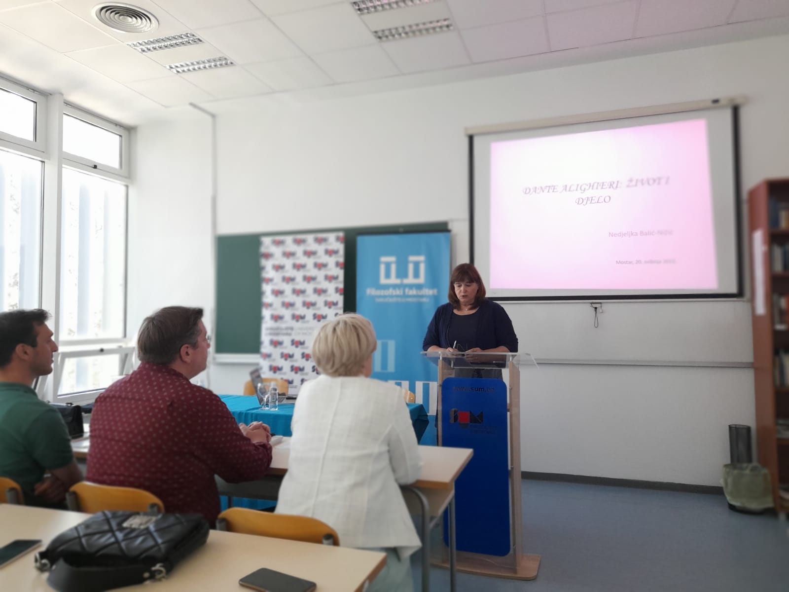 Upoznala je studente s kratkim pregledom Danteovog životopisa i njegovog književnog stvaralaštva s posebnim osvrtom na Božanstvenu komediju.