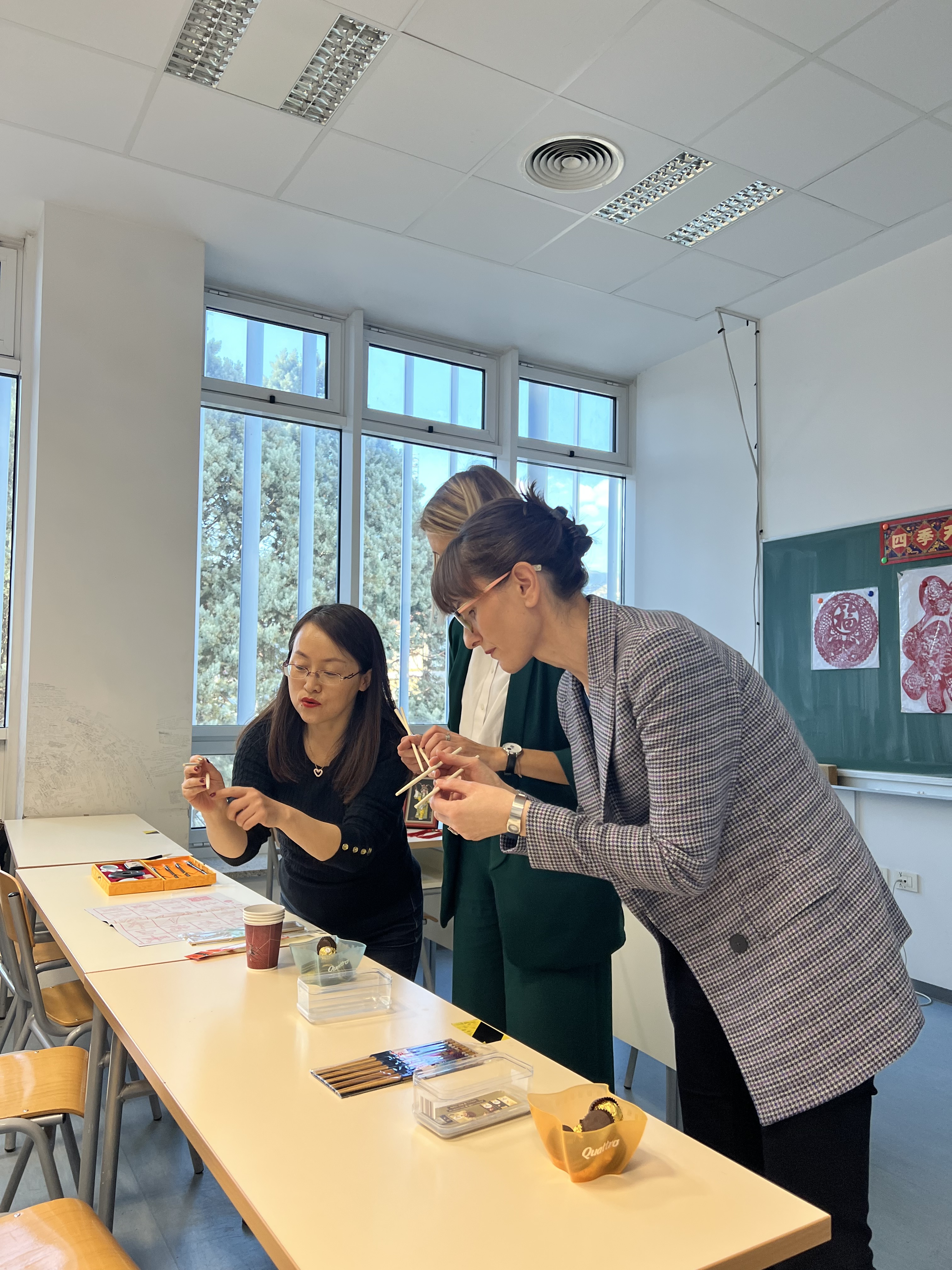 Uz pomoć Lektorice Xu, studenti i profesori imali su priliku demonstrirati kinesku kaligrafiju i popularne kineske štapiće za jelo.
