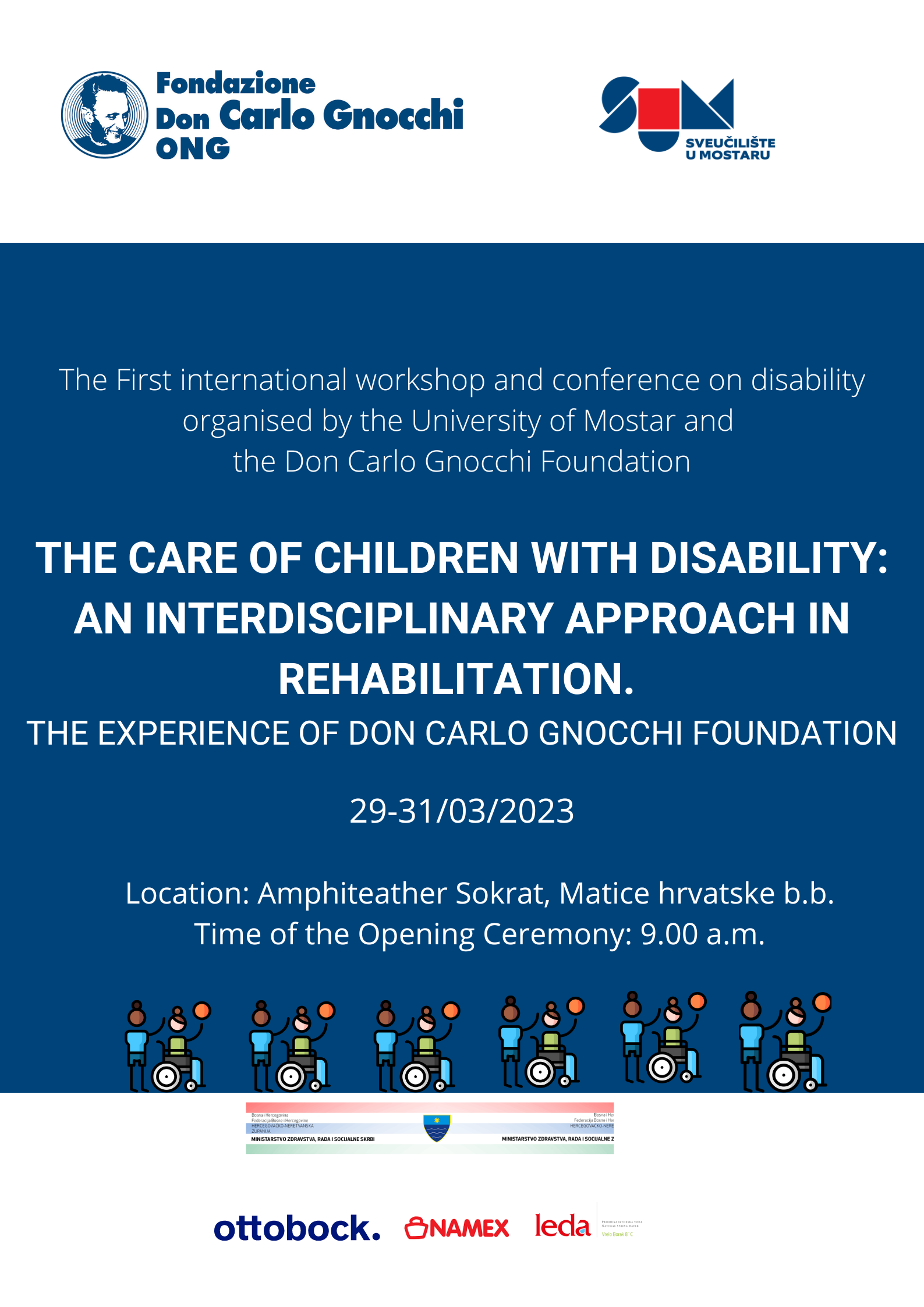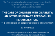 Sveučilište u Mostaru i Fondacija don Carlo Gnocchi organiziraju prvu stručnu radionicu i konferenciju o radu s djecom s teškoćama u razvoju „The care of children with disability: an interdisciplinary approach in rehabilitation. The experience of Don Carlo Gnocchi Foundation“ koja će se održati od 29. do 31. ožujka 2023. na Filozofskom fakultetu SUM-a.