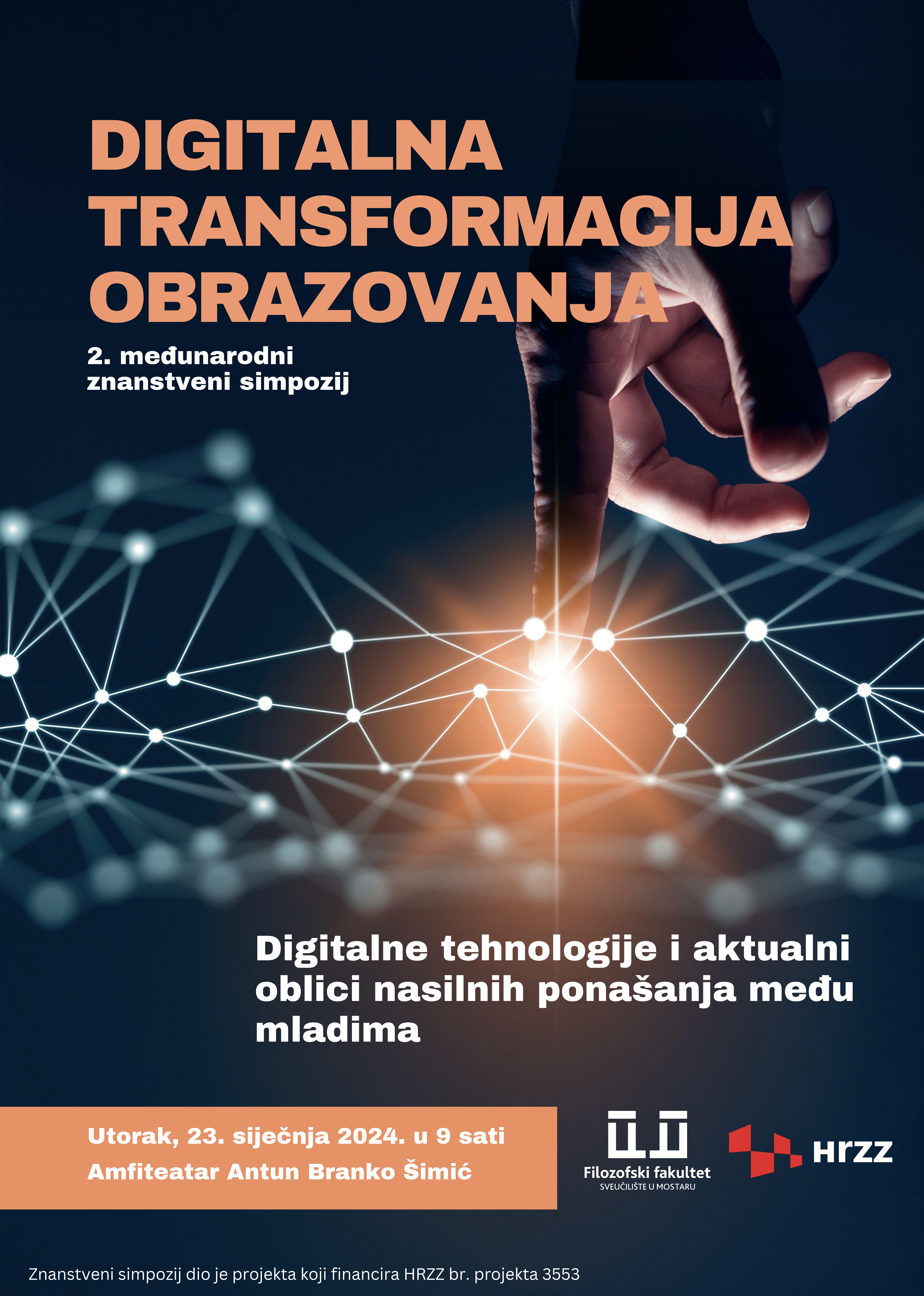 Drugi međunarodni znanstveni simpozij „Digitalna transformacija obrazovanja“ održat će se 23. siječnja s početkom u 9.00 sati na Filozofskom fakultetu Sveučilišta u Mostaru u amfiteatru A. B. Šimić.