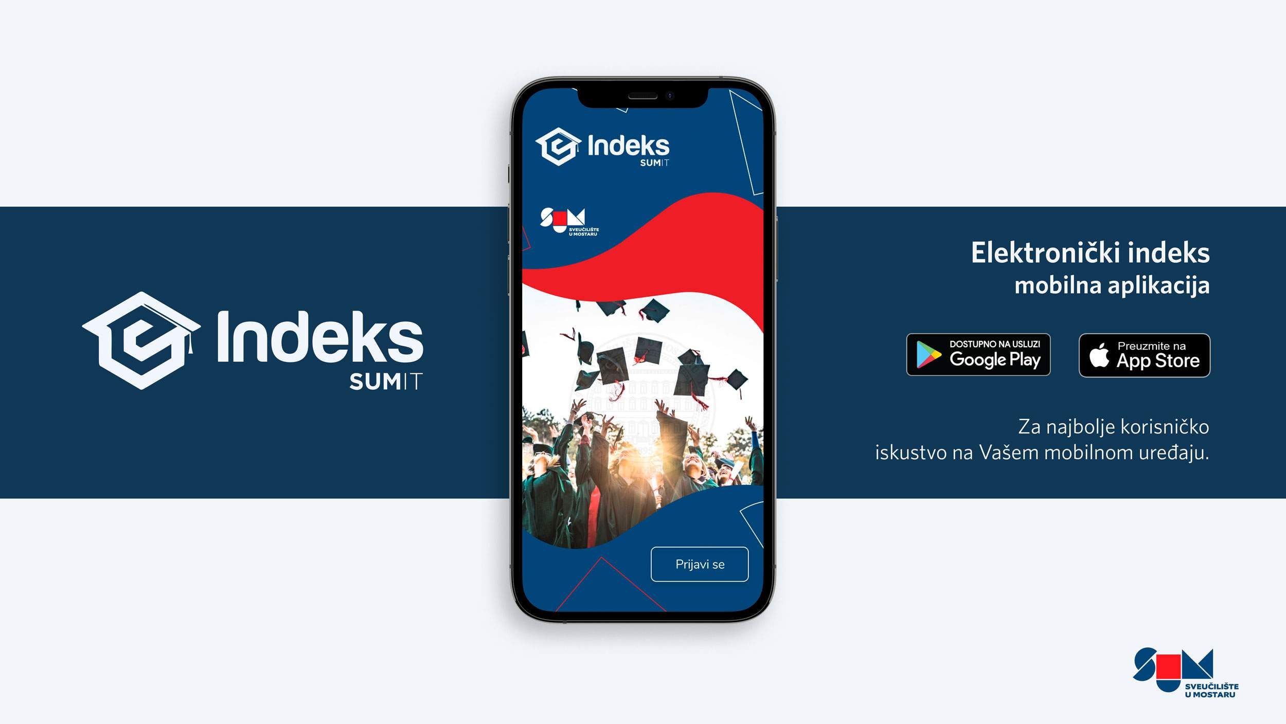 Studenti Sveučilišta imaju mogućnost prijave ispita putem mobilne aplikacije eIndeks. Na ovaj način omogućava se studentima upravljanje ispitnim obvezama izravno preko mobilnih uređaja. Aplikacija je dostupna na Android i iOS uređajima.