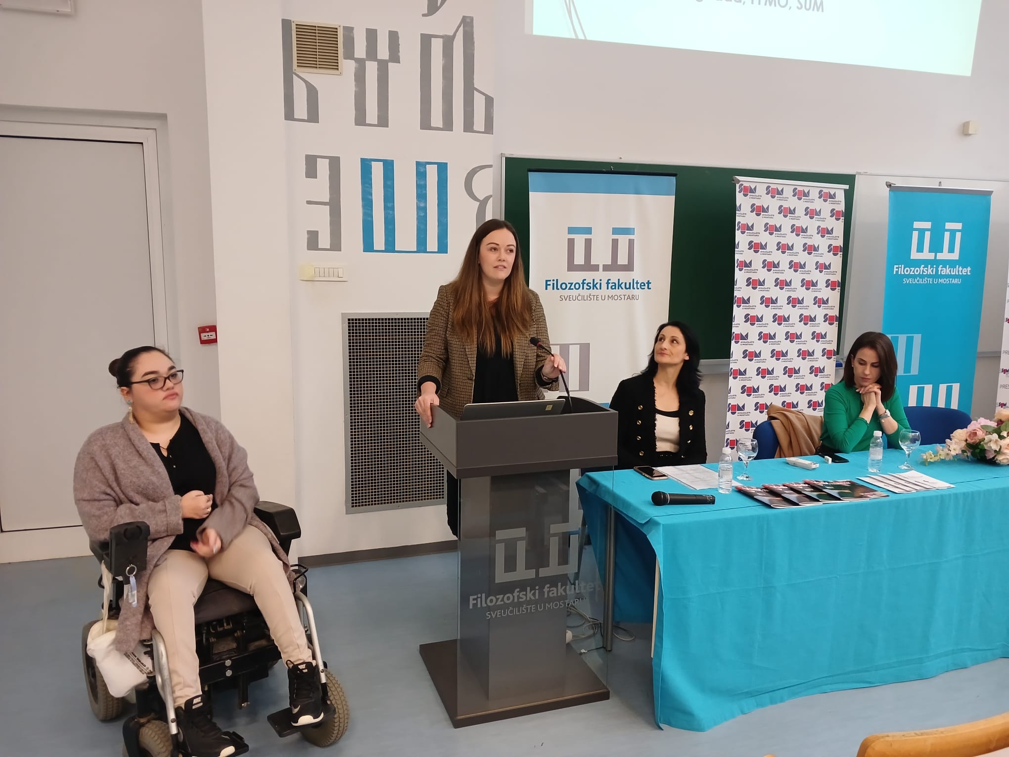 Lara Pravdić, studentica treće godine studija Socijalnog rada Filozofskog fakulteta Sveučilišta u Mostaru održala je predavanje na temu „Život osoba s invaliditetom“ te je studentima prenijela svoja iskustva o studiranju i životu u Mostaru.