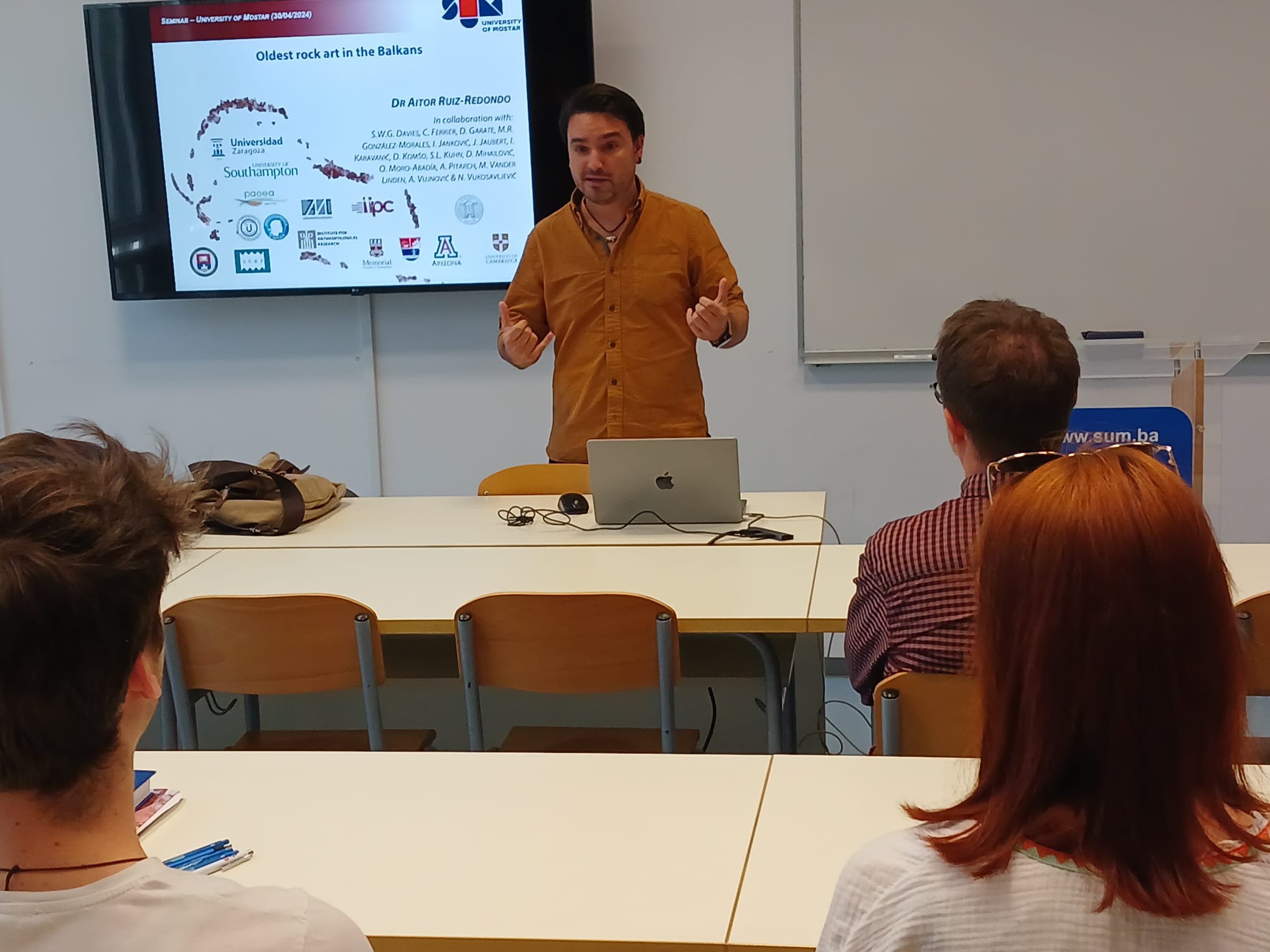 Na studiju Arheologije Filozofskog fakulteta Sveučilišta u Mostaru održano je gostujuće predavanje Oldest rock art in the Balkans, dr. sc. Aitora Ruiza-Redonda sa Sveučilišta u Zaragozi (Španjolska).