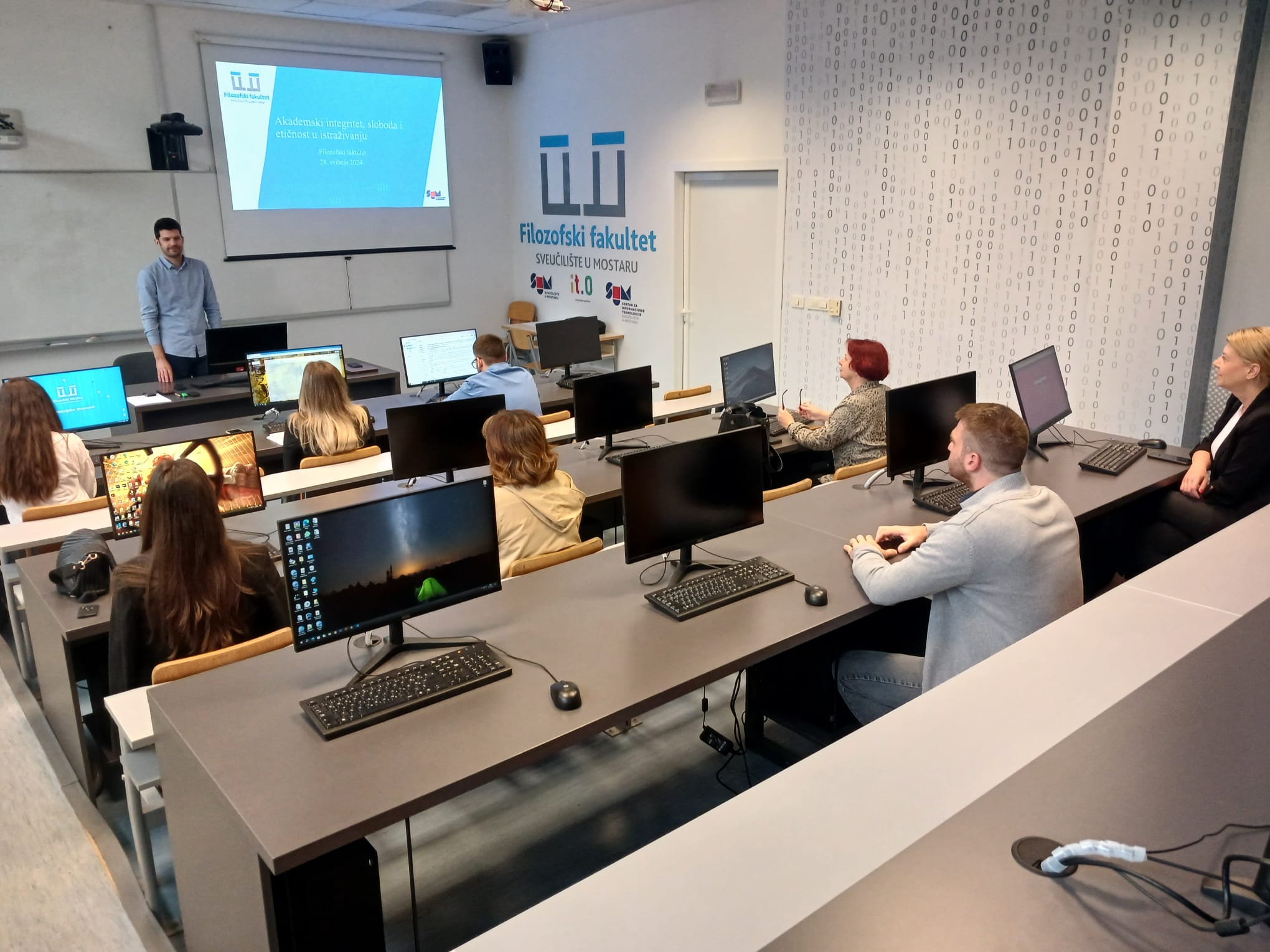 Na Filozofskom fakultetu Sveučilišta u Mostaru održana je radionica na temu akademskog integriteta, slobode i etičnosti te besplatnih alata za provjeru plagijata.