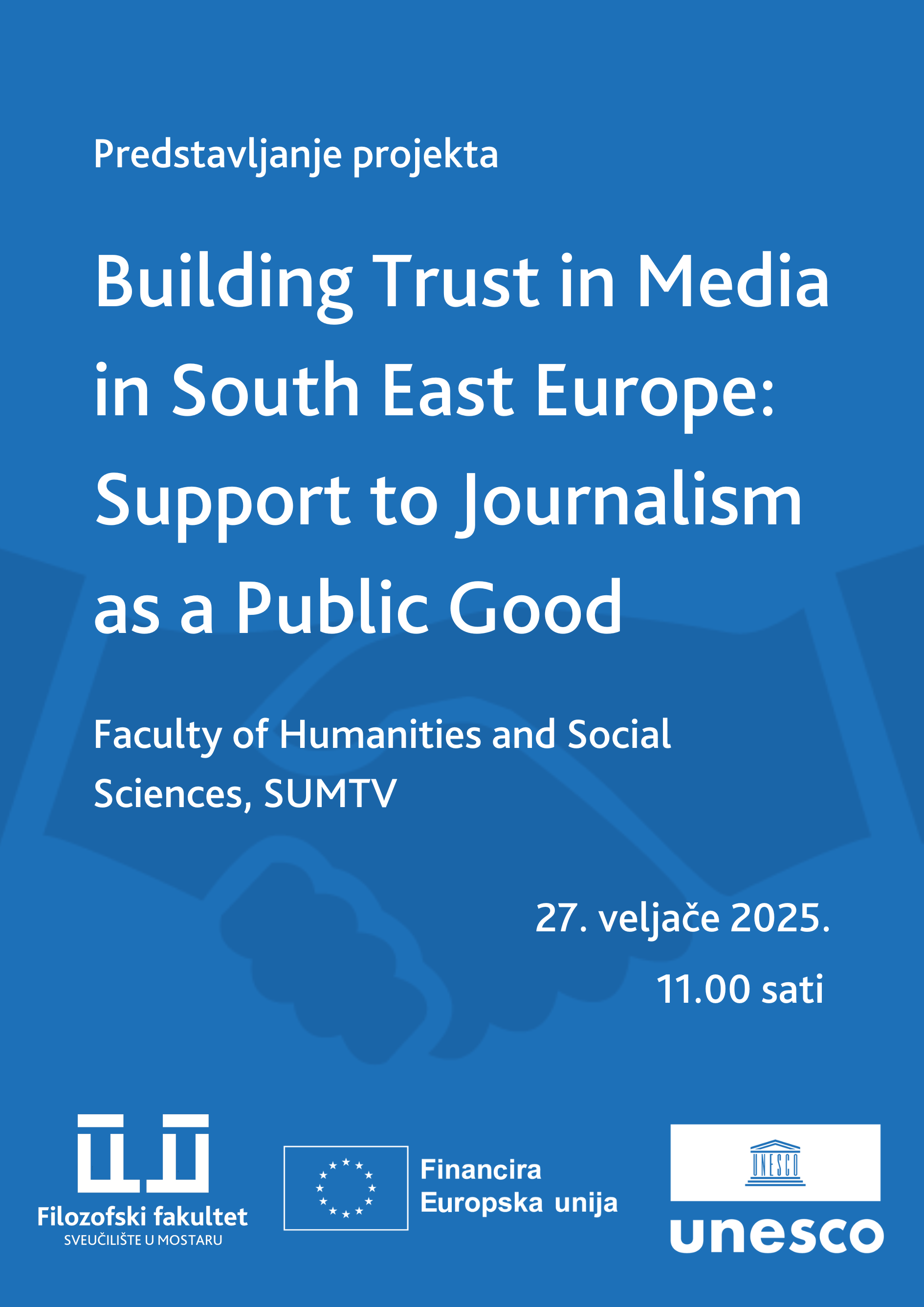 Na Televiziji Sveučilišta u Mostaru (SUM TV) bit će predstavljen projekt „Building Trust in Media in South East Europe: Support to Journalism as a Public Good“ 27. veljače (četvrtak) u 11.00 sati.