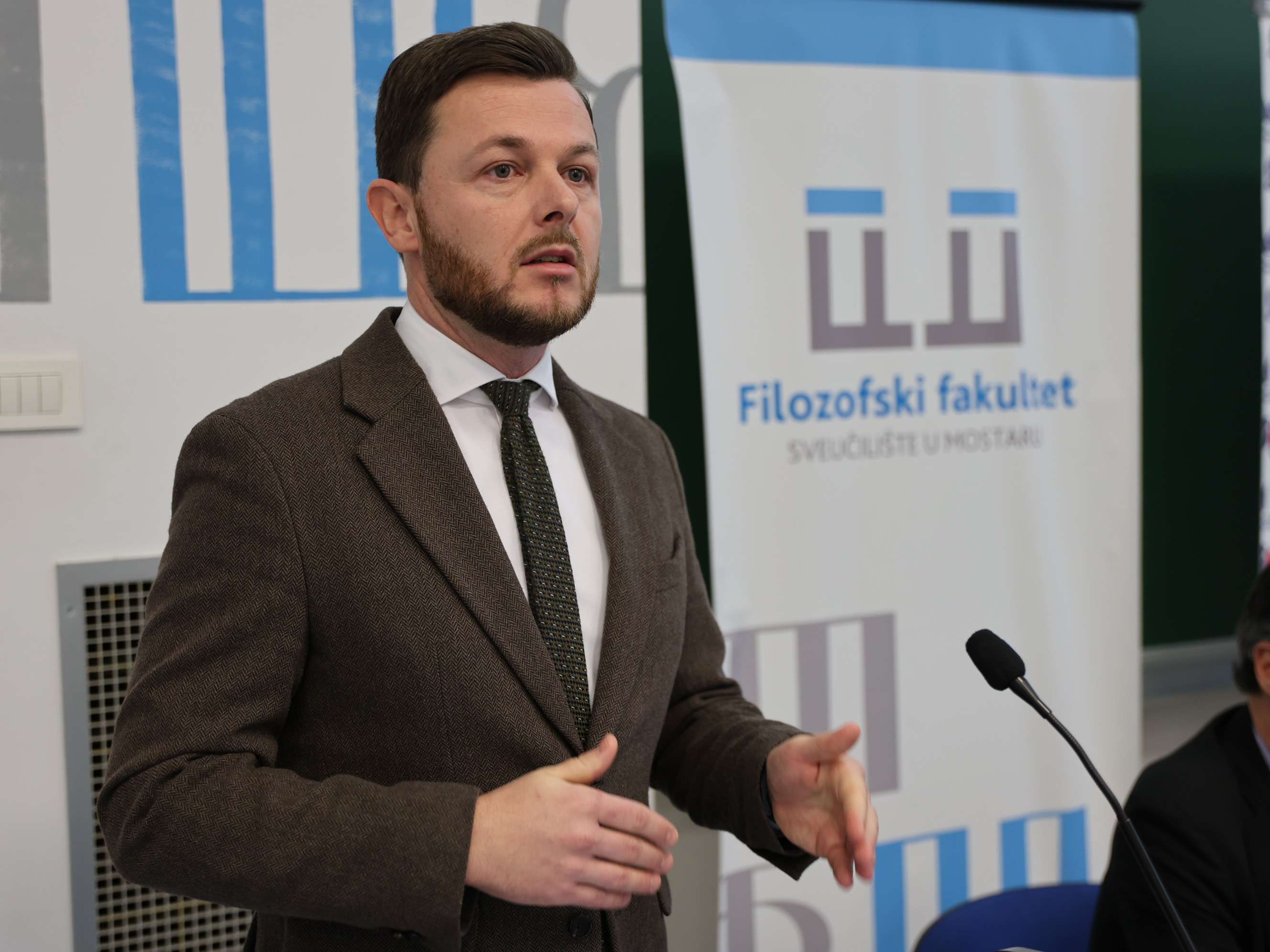 „Jedan od naših najstarijih studija na fakultetu je studij Hrvatskog jezika i književnosti, a zadaća Fakulteta osim obrazovanja budućih magistara struke iz tog područja je brinuti o zaštiti, njegovanju i razvoju hrvatskog jezika, koji je službeni jezik u Bosni i Hercegovini. To je jedna od uloga i Vijeća za hrvatski jezik, savjetodavnog tijela kojeg je imenovala Vlada RH. U tijeku je izrada Nacionalnoga plana jezične politike, a jedan od područja je društvena uloga i pravni položaj hrvatskoga jezika u svijetu, time i u Bosni i Hercegovini i to je jedna od tema o kojoj ćemo danas razgovarati“, kazao je prodekan Odak.